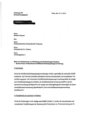 3. die Begrundung 4. die 1. Min-Vorlage und mochte Sie urn Durchsicht der anliegenden Dokumente nach lhrem Zustandigkeitsbereich bitten. Teilweise sind die Dokumente auch mit konkreten Fragen an Sie versehen. So fehlen beispielsweise in der Begrundung noch vereinzelt Erganzungen. Da wir zeitlich .im Verzug sind und ich nichste Woche Z20 und Z25 mitzeichnen lassen mochte, bin ich Ihnen fur lhre Anmerkungen und Mitzeichnung bis Freitag, den 22.11.2019, OS dankbar. Sollten noch Fragen bestehen, stehe ich selbstverstandlich gerne zur Verfugung. Freundliche GruBe f. ~ ws 20 . ·~