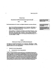 17 b) Nummer 4 Buchstabe a wird wie folgt geandert: nach den WOrtern .(VkBI. 2009 S. 272) werden folgende WOrter ange- fOgt: ..Anderung von 2018 (MSC.453(100)) Angenommen am 7. Dezember 2018 (VkBI. 2019 S ... )". c) Nummer 4 Buchstabe b wird wie folgt geandert: aa) Nach den WOrtem .Code Ober die Sicherheit von Spezialschif- fen" werden die WOrter .von 2008" eingefOgl bb) Nach den WOrtern .(VkBI. 2016 S. 675)" werden folgende WOrter angefOgt: .- d) Anderung von 2018 (MSC.445(99)) Angenommen am 24. Mai 2018 (VkBI. 2019 S ... )". Die Angaben zu Nummer 29 werden wie folgt geandert Nach den WOrtem .(VkBI. 2018 S. 236)" werden folgende WOrter einge- fOgt: .Richtlinien von 2017 Clber zusatzliche Aspekte der Technischen NOx-Vorschrift 2008 in Bezug auf besondere Anforderungen an Schiffsdieselmotoren mit Systemen zur selektiven katalytischen Reduktion (SCR) (EntschlieBung MEPC.291/71 )) Angenommen am 7. Juli 2017 (VkBI. 2019 S. 681 )". e) Nach den Angaben zu Nummer 42 werden folgende WOrter angefOgt: .42. Richtlinien von 2017 fOr die Risikobewertung nach Regel A-4 des Ballastwasser-Obereinkommens (G7) (MEPC.289(71)) Angenommen am 7. Juli 2017 (VkBI. 2019 S. 425)". Artikel2 Anderung der Schiffssicherheitsverordnung Die SChiffssicherheitsverordnung vom 18. September 1998 (BGBI. IS. 3013, 3023), die zuletzt durch Artikel 2 der Verordnung vom 19.Dezember 2018 (BGBI. I S. 2701) geandert worden ist, wird wie folgt geandert:
