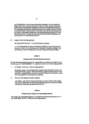23 .Auf Probefahrten in den inneren deutschen Gewassern und im deutschen KOstenmeer oder von einem deutschen Hafen zu einem anderen deutschen Hafen kOnnen erforderliche Zeugnisse durch eine Probefahrtbescheinigung der Berufsgenossenschaft Verkehrswirtschaft Post-Logistik Telekommunikati- on ersetzt werden. Diese bestimmt mit Zustimmung des Bundesministeriums fOr Verkehr und digitale lnfrastruktur die Sicherheitsanforderungen tar Probe- fahrten nach Satz 1, soweit sie nicht anderweitig verbindlich festgelegt sind, und macht sie im Verkehrsblatt bekannt. • 10. Anlage 3 wird wie folgt geandert: Der Abschnitt 8 Nummer 1.1.6 wird wie folgt neu gefasst: • 1.1.6 Der Bewerber hat seine Anmeldung schriftlich an einen PrOfungsaus- schuss zu richten. Der Anmeldung ist ein aktuelles Passbild beizufQgen. Die Anmeldung zu einer Profung kann auch als Gruppenanmeldung erfolgen.· Artikel3 Anderung der See-Sportbootverordnung Die See-Sportbootverordnung vom 29. August 2002, die zuletzt durch Artikel10 der Verordnung vom XXXXXXX(BGBI. I S. ) geandert worden ist, wird wie folgt geandert: 1. § 2 Absatz 1 Nummer 1 wird wie folgt geAndert: Die WOrter .Sport- und Freizeitzwecke" werden durch die WOrter .Sport- und Erholungszweck~· ersetzt. Hinter den WOrtern .gebaut worden sind und• wird das Wort • ausschlieBiich" und hinter dem Wort .Personen• die WOrter .zuzug- lich FahrzeugfQhrer und Besatzung• eingefOgt. 2. Dem § 4 wird folgender Absatz angetagt: .(4) Al;>satz 1 gilt nicht fOr Wassermotorrader, die durch FOhren einer Flagge oder durch Aufschriften als Wasserrettungsfahrzeuge einer als gemeinnotzig anerkannten KOrperschaft gekennzeichnet sind." Artikel4 Anderung der Anlage zum Seeaufgabengesetz Die Anlage zum Seeaufgabengesetz, neu gefasst durch Bekanntmachung vom 17. Juni 2016 (BGBI. 2016 IS. 1489), wird wle folgt geAndert: