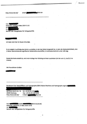 ' -~ . ' . .... iF'" llrmallto-@bmvi.bund.de] Mlf'ir. ........ ~... 10. April 2019 15:37 Betreff· WG· u t . . mse. zung der Fahrgastregistrierungsrichtlinie zum 2. bullet point der unten stehenden E-Mail habe ich folgende Frage: Konnten wir das Verfahren vereinfachen und die lnternet-Adresse angeben, unter der die Karte zu. finden lst? Wir konnen gerne hierUber morgen telefonieren. Mit freundlichen GrU&en Jm Auftrag Referat WS 22 ~undesminlsterium fur Verkehr und digitale lnfrastruktur rei.: 0228·99303 !-mail.{personlich} r bmvi.bund.de -mail {Referat): Ref-WS22@bmvi.bund.de 4