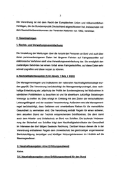5 Die Verordnung ist mit dem Recht der Europaischen Union und volkerrechUichen Vertragen, die die Bundesrepublik Deutschland abgeschlossen hat, insbesondere mit dem SeerechtsObereinkommen der Vereinten Nationen von 1982, vereinbar. V. Gesetzesfolgen 1. Rechts- und Verwaltungsvereinfachung Die Umstellung der Meldungen Ober die Anzahl der Personen an Bord und auch Ober deren personenbezogenen Daten bei langeren Fahrten auf Fahrgastschiffen auf elektronische Verfahren stellt eine Verwaltungsvereinfachung dar. Sie ermoglicht den zustandigen Behorden bei einem Unfall eines Fahrgastschiffes, auf diese Daten sehr schnell zugreifen und diese nutzen zu konnen. 2. Nachhaltlgkeitsaspekte (§ 44 Absatz 1 Satz 4 GGOl Die Managementregeln und Indikatoren der nationalen Nachhaltigkeitsstrategie wur- den geprOft. Die Verordnung berucksichtigt die Managementgrundregel, dass nach- haltige Entwicklung als Leitprinzip der Politik der 13undesregierung bei MaBnahnien in samtlichen Politikfeldem zu beachten ist und fOr absehbare zukunftige Belastungen Vorsorge zu treffen ist. Dies erfolgt im Einklang mit den Zielen der wirtschaftlichen Leistungsfahigkeit und der sozialen Verantwortung. AuBerdem wird die Management- regal berOcksichtigt, dass Gefahren und unvertretbare Risiken fOr die menschliche Gesundheit zu vermeiden sind. Die Verordnung enthalt Regeln fur einen sicheren. dem. aktuellen Stand der Technik entsprechenden Schiffsbetrieb. Sie dient damit auch dem Arbeits- und Unfallschutz an Bord von Schiffen. Die laufende Verbesse- rung der Sicherheit von Schiffen tragt dem Nachhaltigkeitsindikator der Gesundheit im Interesse der dort tatigeri Seeleute Rechnung. DarOber hinaus dienen die in der Verordnung enthaltenen Regeln dem Umweltschutz bei gleichzeitiger angemessener BerOcksichtigung derzeitiger und kOnftiger Nutzungsinteressen im Hinblick auf die Meeresgewasser. 3. Haushaltsausgaben ohne ErfOIIungsaufwand Keine. 3.1. Haushaltsausgaben ohne ErfOIIungsaufwand fOr den Bund