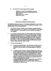 18 4. § 13 Absatz 2 Nummer 10 wird wie folgt gefasst: .. 10. die amtlich zuUissige Anzahl von Personen, die von dem Schiff be- fordert werden dOrfen, nicht Oberschritten wird,". 5. § 14 Absatz 1 Nummer 2 Buchstabe k wird wie folgt gefasst: ..k) entgegen § 13 Absatz 2 Nummer 10 nicht dafur sorgt, dass eine dart genannte Anzahl von Personen nicht uberschritten wird,". 6. § 15 wird wie folgt gefasst: .,Fahrzeuge, die am 13. Marz 2018 uber ein Sicherheitszeugnis fur Ausbil- dungsfahrzeuge nach § 6 Absatz 1 Nurnmer 7 Buchstabe c in Verbindung mit § 15 der Schiffsicherheitsverordnung in der Fassung vom 29. Marz 2017 (BGBI. I S. 626) und § 52a Absatz 1 der Schiffsicherheitsverordnung vom 8. Dezember 1986 in der Fassung der Bekanntmachung vom 3. September 1997 (BGBI. IS. 2217), geandert durch die Verordnung vom 19. Juni 1998 (BGBI. I S. 1431), vertogt haben, erhalten auf Antrag bei Vorliegen der schiffssicher- heitsrechtlichen Voraussetzungen ein Sicherheitszeugnis nach § 14 der See-:- Sportbootverordnung. Das Zeugnis kann nicht emeuert werden, wenn seit dem Ablaut der GOitigkeit des letzten Zeugnisses mehr als runf Jahre vergan- gen sind". 7. Anlage 1 wird wie folgt geandert: a) Abschnitt A wird wie folgt geandert: aa) Die Oberschrift wird wie folgt gefasst: ..A. bb) Z u d e n R e c h t s a k t e n d e r E u r o p a i sc h e n Gemeinschaften und der Europaisc hen Union in ihrer jeweils geltenden Fa s sung". Unterabschnitt A.lll.a. wird wie folgt geandert: aaa) In Nummer 1.1 werden die Worter ..Abwicklung nach ei- nem Unfall" durch die Worter ..Aufarbeitung eines Unfalls" ersetzt. bbb) Nummer 1.2 wird ·wie folgt gefasst: .. 1. 2 Die Berufsgenossenschaft Verkehrswirtschaft Post- Logistik Telekommunikation ist zustandig fur · a) die Entgegennahme der Benennungen von Fahrgastregisterfuhrern nach Artikel 8 Ab- satz 1,