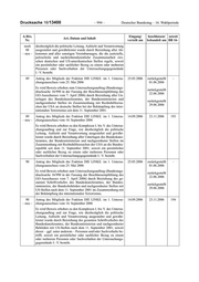 Drucksache 16/13400 – 990 – Deutscher Bundestag – 16. Wahlperiode A-Drs. Eingang/ beschlossen/ soweit Art, Datum und Inhalt Nr. verteilt am behandelt am BB 16- 77 Antrag des Mitglieds der Fraktion DIE LINKE. im 1. Untersu- 14.09.2006 23.11.2006 186 – neu – chungsausschuss vom 14. September 2006 Es wird Beweis erhoben zum Komplex II. des Untersuchungsauf- trag und zur Frage, wie diesbezüglich die politische Leitung, Auf- sicht und Verantwortung ausgestaltet und gewährleistet wurde durch Beiziehung aller Unterlagen, einschließlich Protokollen, Sprechzetteln, Vermerken und Aktennotizen, sämtlicher Behör- den des Bundes und der Länder Baden-Württemberg und Bayern, die sich mit Hinweisen auf etwaige Aktivitäten ausländischer Polizei- und Nachrichtendienste im Zusammenhang mit Ermitt- lungsmaßnahmen gegen das Multikulturhaus Neu-Ulm, das isla- mistische Informationszentrum Ulm und deren Mitglieder und Besucher befassen oder aus denen sich solche Hinweise ergeben. 78 Antrag des Mitglieds der Fraktion DIE LINKE. im 1. Untersu- 25.05.2006 01.06.2006 67 chungsausschuss vom 25. Mai 2006 Es wird Beweis erhoben zum Untersuchungsauftrag (Bundestags- drucksache 16/990 in der Fassung der Beschlussempfehlung des GO-Ausschusses vom 7. April 2006) durch Vernehmung des BND-Vertreters in Mazedonien, der am 28. August 2004 eine in- formelle Anfrage zum Sachverhalt K. E. M. an das mazedonische Innenministerium gestellt hat, als Zeugen. 79 Antrag des Mitglieds der Fraktion DIE LINKE. im 1. Untersu- 25.05.2006 01.06.2006 68 chungsausschuss vom 25. Mai 2006 Es wird Beweis erhoben zum Untersuchungsauftrag (Bundestags- drucksache 16/990 in der Fassung der Beschlussempfehlung des GO-Ausschusses vom 7. April 2006) durch Beiziehung aller Ak- ten, Handakten und Vermerke zum staatsanwaltschaftlichen Er- mittlungsverfahren gegen Reda S.. 80 Antrag des Mitglieds der Fraktion DIE LINKE. im 1. Untersu- 25.05.2006 zurückgestellt – chungsausschuss vom 25. Mai 2006 01.06.2006 Es wird Beweis erhoben zum Untersuchungsauftrag (Bundestags- zurückgestellt drucksache 16/990 in der Fassung der Beschlussempfehlung des 22.06.2006 GO-Ausschusses vom 7. April 2006) durch Beiziehung aller Un- terlagen zur Planung und Einrichtung der „Besonderen Aufbau- zurückgestellt organisation USA“ des BKA, insbesondere der diesbezüglichen 29.06.2006 Planungs- und Einrichtungsprotokolle, sowie aller Unterlagen zu deren Überführung in eine Regelorganisation. 80 Antrag des Mitglieds der Fraktion DIE LINKE. im 1. Untersu- 14.09.2006 23.11.2006 187 – neu – chungsausschuss vom 14. September 2006 Es wird Beweis erhoben zu den Komplexen I. bis V. des Untersu- chungsauftrag und zur Frage, wie diesbezüglich die politische Leitung, Aufsicht und Verantwortung ausgestaltet und gewähr- leistet wurde durch Beiziehung aller Unterlagen zur Planung und Einrichtung der „Besonderen Aufbauorganisation USA“ des BKA, insbesondere der diesbezüglichen Planungs- und Einrich- tungsprotokolle, sowie aller Unterlagen zu deren Überführung in einer Regelorganisation, soweit ein persönlicher oder sachlicher Bezug zu deren Überführung in eine Regelorganisation, soweit ein persönlicher oder sachlicher Bezug zu einem oder mehreren Personen oder Sachverhalten der Untersuchungsgegenstände I.–V. besteht.