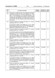 Drucksache 16/13400 – 1004 – Deutscher Bundestag – 16. Wahlperiode A-Drs. Eingang/ beschlossen/ soweit Art, Datum und Inhalt Nr. verteilt am behandelt am BB 16- noch Unterlagen der Bundesregierung und nachgeordneter Behörden, 125 insbesondere des BND, aus denen sich Vorgehensweise, Inhalt, Ziel, form und Umfang der – laut Presseerklärung vom 1. Juni 2006 – von der Bundesregierung eingeleiteten Aufarbeitung des Vorgangs, dass ein Mitarbeiter des mittleren Dienstes des BND erst Ende Mai 2006 gegenüber seinen Vorgesetzten Angaben zu seinem Wissen über die Festnahme Khaled el-Masris gemacht hat, ergeben. 126 Antrag des Mitglieds der Fraktion DIE LINKE. im 1. Untersu- 16.06.2006 29.06.2006 98 chungsausschuss vom 15. Juni 2006 Es wird Beweis erhoben zu den Punkten II.1./2./3./5./6., durch Beiziehung der im Referat PI 5 des BMI geführten Aktes „Koor- dination Drittstaatenunterstützung des AA – TE Bekämpfung – Mazedonien“ (Aktenzeichen p 15-624 373-2/24). 127 Antrag des Mitglieds der Fraktion DIE LINKE. im 1. Untersu- 16.06.2006 29.06.2006 99 chungsausschuss vom 15. Juni 2006 Es wird Beweis erhoben zum Untersuchungsauftrag (Bundestags- drucksache 16/990 in der Fassung der Beschlussempfehlung des GO-Ausschusses vom 7. April 2006 [Bundestagsdrucksache 1671179]), insbesondere zu dem Punkten II.1./2./3./5./6., durch Beiziehung der im Referat PI 5 des BMI geführten Akte „Rechts- hilfe Makedonien Mazedonien“ (Aktenzeichen p 15-625 482 MAK/1). 128 Antrag des Mitglieds der Fraktion DIE LINKE. im 1. Untersu- 16.06.2006 29.06.2006 100 chungsausschuss vom 15. Juni 2006 Es wird Beweis erhoben zu den Punkten II.1./2./3./5./6., durch Beiziehung der im Referat P I 5 des BMI geführten Akte „Make- donien/Mazedonien MAK allgemein“ (Aktenzeichen p 15-645 400 MAK/0). 129 Antrag des Mitglieds der Fraktion DIE LINKE. im 1. Untersu- 16.06.2006 29.06.2006 101 chungsausschuss vom 15. Juni 2006 Es wird Beweis erhoben zu den Punkten II.1./2./3./5./6., durch Beiziehung der im Referat P I 5 des BMI geführten Akte „Ab- kommen, Vereinbarungen, Erklärungen mit Mazedonien/Make- donien MAZ“ (Aktenzeichen p 15-645 400 MAK/1). 130 Antrag des Mitglieds der Fraktion DIE LINKE. im 1. Untersu- 16.06.2006 29.06.2006 102 chungsausschuss vom 15. Juni 2006 Es wird Beweis erhoben zu den Punkten II.1./2./3./5./6., durch Beiziehung der im Referat P I 5 des BMI geführten Akte „Make- donien MAK/Mazedonische Besuche ausländischer Delegatio- nen oder Besuche im Ausland auf Fachebene“ (Aktenzeichen p 15-645 400 MAK/5). 131 Antrag des Mitglieds der Fraktion DIE LINKE. im 1. Untersu- 16.06.2006 29.06.2006 103 chungsausschuss vom 15. Juni 2006 Es wird Beweis erhoben zu den Punkten II.1./2./3./5./6., durch Beiziehung der im Referat P I 3 des BMI geführten Akte MAK MAZ Zusammenarbeit mit Makedonien Mazedonien“ (Aktenzei- chen p 13-625 400 MAK/1).