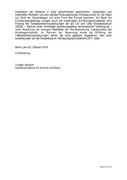 Anbetracht der billigend in Kauf genommenen psychischen, physischen und materiellen Schäden und den darüber hinausgehenden Konsequenzen für die Opfer aus Sicht der Geschädigten von einer Form des Terrors sprechen. Auf Basis der Ermittlungsergebnisse erfolgte durch die zuständigen Ermittlungsdienststellen eine Prüfung der Tatbestandsvoraussetzungen der §§ 129 und 129a Strafgesetzbuch (StGB) – Bildung einer kriminellen beziehungsweise terroristischen Vereinigung – unter Beachtung der strengen Maßstäbe der Rechtsprechung, insbesondere des Bundesgerichtshofs. Im Rahmen der Bewertung wurde die Erfüllung der Tatbestandsvoraussetzungen bisher als nicht gegeben angesehen, was auch Auswirkungen auf die Darstellung im Verfassungsschutzbericht 2017 hatte. Berlin, den 22. Oktober 2018 In Vertretung Torsten Akmann Senatsverwaltung für Inneres und Sport Seite 24 von 24