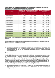 Senatsverwaltung für Bildung, Jugend und Familie Frau Abgeordnete Katrin Seidel (LINKE) über den Präsidenten des Abgeordnetenhauses von Berlin über Senatskanzlei - G Sen - Antwort auf die Schriftliche Anfrage Nr. 18/18998 vom 22. Mai 2019 über Versorgungsgrad in Kita und Tagespflege 2018 (I) ___________________________________________________________________ Im Namen des Senats von Berlin beantworte ich Ihre Schriftliche Anfrage wie folgt: 1. Wie viele Kinder von 0 bis drei Jahren haben im Verhältnis zur Gesamtzahl der Kinder in dieser Altersgruppe zum Stichtag 31.12.2018 ein Angebot in einer Kita oder in Tagespflege in Anspruch genommen (bitte aufgliedern nach Bezirken, Alter und Betreuungsumfang, Tagespflege bitte gesondert aufführen) 2. Wie viele Kinder von 3 bis zum Schuleintritt haben im Verhältnis zur Gesamtzahl der Kinder in dieser Altersgruppe zum Stichtag 31.12.2018 ein Angebot in einer Kita oder in Tagespflege in Anspruch genommen (bitte aufgliedern nach Bezirken, Alter und Betreuungsumfang, Tagespflege bitte gesondert aufführen)? 3. Wie hoch ist zum Stichtag 31.12.2018 der Versorgungsgrad in den jeweiligen Altersstufen, gemessen an der Zahl der melderechtlich registrierten Kinder des jeweiligen Alters (bitte bezirklich aufschlüsseln und auch auf ganz Berlin bezogen darstellen)? Zu 1 bis 3.: Zum Stichtag 31.12.2018 nahmen nach Auswertung der Integrierten Software Berliner Ju- gendhilfe (ISBJ) insgesamt 164.916 Berliner Kinder (hier ohne 995 Kinder aus Branden- burg) im Alter von 0 Jahren bis unter 7 Jahren ein Betreuungsangebot in Anspruch, darun- ter 159.210 bzw. 96,5 Prozent in Kindertageseinrichtungen und 5.701 bzw. 3,5 Prozent in Kindertagespflege. Die Zahl der 0- bis unter 3-jährigen Kinder, die ein Betreuungsangebot in Anspruch nah- men, belief sich am Stichtag 31.12.2018 auf 53.628. Dies waren nach derzeitigem Stand rund 45,2 Prozent aller Berliner Kinder in dieser Altersgruppe. Ferner wurden zu diesem Stichtag 111.288 Kinder im Alter von 3 Jahren bis zum Schuleintritt betreut, darunter 100.407 Kinder im Alter von 3 bis unter 6 Jahren und 10.881 Kinder im Alter von 6- bis unter