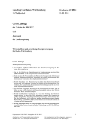 Landtag von Baden-Württemberg Drucksache 15 / 2863 Ergänzend bedarf es für alle wesentlichen Handlungsbereiche eines transparenten Monitoring und Controlling mit zeitlich definierten, messbaren Meilensteinen, Zeit- und Maßnahmenpläne, transparenten Statusberichten und resultierende Steuerungsmaßnahmen sowie der notwendigen Abstimmung dieses baden-würt- tembergischen „Masterplans“ mit den anderen Bundesländern und den europä- ischen Nachbarn. Es bleibt die vornehmste Aufgabe der Landesregierung, sowohl für die privaten Verbraucher als auch für die Unternehmen in Baden-Württemberg, durchgängig und jederzeit für ein Höchstmaß an Versorgungssicherheit zu wettbewerbsfähigen und sozialverträglichen Preisen Sorge zu tragen. Antwort Schreiben des Staatsministeriums vom 26. Februar 2013 Nr. III-4500: In der Anlage übersende ich unter Bezugnahme auf § 63 der Geschäftsordnung des Landtags von Baden-Württemberg die von der Landesregierung beschlossene Antwort auf die Große Anfrage. Krebs Ministerin im Staatsministerium 5