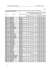 Landtag von Baden-Württemberg Drucksache 15 / 6185 2006/07 118 - Ludwigsburg (LKR) Werkreal-/Hauptschulen X 11 – X X 2006/07 118 - Ludwigsburg (LKR) Realschulen 104 X 35 X X 2006/07 118 - Ludwigsburg (LKR) Gymnasien 2 16 X X X 2006/07 119 - Rems-Murr-Kreis (LKR) Werkreal-/Hauptschulen X 12 – X X 2006/07 119 - Rems-Murr-Kreis (LKR) Realschulen 74 X 13 X X 2006/07 119 - Rems-Murr-Kreis (LKR) Gymnasien – 6 X X X 2006/07 121 - Heilbronn (SKR) Werkreal-/Hauptschulen X 4 – X X 2006/07 121 - Heilbronn (SKR) Realschulen 36 X 2 X X 2006/07 121 - Heilbronn (SKR) Gymnasien 1 7 X X X 2006/07 125 - Heilbronn (LKR) Werkreal-/Hauptschulen X 5 – X X 2006/07 125 - Heilbronn (LKR) Realschulen 79 X 21 X X 2006/07 125 - Heilbronn (LKR) Gymnasien – 7 X X X 2006/07 126 - Hohenlohekreis (LKR) Realschulen 8 X 3 X X 2006/07 126 - Hohenlohekreis (LKR) Gymnasien 1 – X X X 2006/07 127 - Schwäbisch Hall (LKR) Werkreal-/Hauptschulen X 5 – X X 2006/07 127 - Schwäbisch Hall (LKR) Realschulen 25 X 7 X X 2006/07 127 - Schwäbisch Hall (LKR) Gymnasien – 3 X X X 2006/07 128 - Main-Tauber-Kreis (LKR) Werkreal-/Hauptschulen X 4 – X X 2006/07 128 - Main-Tauber-Kreis (LKR) Realschulen 15 X 4 X X 2006/07 128 - Main-Tauber-Kreis (LKR) Gymnasien 2 2 X X X 2006/07 135 - Heidenheim (LKR) Werkreal-/Hauptschulen X 6 – X X 2006/07 135 - Heidenheim (LKR) Realschulen 29 X 4 X X 2006/07 135 - Heidenheim (LKR) Gymnasien – 3 X X X 2006/07 136 - Ostalbkreis (LKR) Werkreal-/Hauptschulen X 2 – X X 2006/07 136 - Ostalbkreis (LKR) Realschulen 55 X 14 X X 2006/07 136 - Ostalbkreis (LKR) Gymnasien – 11 X X X 2006/07 211 - Baden-Baden (SKR) Realschulen 11 X 2 X X 2006/07 211 - Baden-Baden (SKR) Gymnasien – 2 X X X 2006/07 212 - Karlsruhe (SKR) Werkreal-/Hauptschulen X 4 – X X 2006/07 212 - Karlsruhe (SKR) Realschulen 27 X 12 X X 2006/07 212 - Karlsruhe (SKR) Gymnasien – 7 X X X 2006/07 215 - Karlsruhe (LKR) Werkreal-/Hauptschulen X 5 1 X X 2006/07 215 - Karlsruhe (LKR) Realschulen 89 X 22 X X 2006/07 215 - Karlsruhe (LKR) Gymnasien – 8 X X X 2006/07 216 - Rastatt (LKR) Realschulen 42 X 13 X X 2006/07 216 - Rastatt (LKR) Gymnasien – 2 X X X 2006/07 221 - Heidelberg (SKR) Realschulen 15 X 1 X X 2006/07 222 - Mannheim (SKR) Werkreal-/Hauptschulen X 6 – X X 2006/07 222 - Mannheim (SKR) Realschulen 20 X 11 X X 2006/07 222 - Mannheim (SKR) Gymnasien – 1 X X X 2006/07 225 - Neckar-Odenwald-Kreis (LKR) Realschulen 8 X 7 X X 2006/07 226 - Rhein-Neckar-Kreis (LKR) Werkreal-/Hauptschulen X 10 – X X 2006/07 226 - Rhein-Neckar-Kreis (LKR) Realschulen 77 X 20 X X 2006/07 226 - Rhein-Neckar-Kreis (LKR) Gymnasien – 4 X X X 2006/07 231 - Pforzheim (SKR) Werkreal-/Hauptschulen X 2 – X X 2006/07 231 - Pforzheim (SKR) Realschulen 37 X 10 X X 2006/07 231 - Pforzheim (SKR) Gymnasien – 11 X X X 2006/07 235 - Calw (LKR) Werkreal-/Hauptschulen X 4 – X X 2006/07 235 - Calw (LKR) Realschulen 19 X 5 X X 2006/07 235 - Calw (LKR) Gymnasien 1 2 X X X 2006/07 236 - Enzkreis (LKR) Realschulen 29 X 4 X X 2006/07 236 - Enzkreis (LKR) Gymnasien 1 3 X X X 2006/07 237 - Freudenstadt (LKR) Werkreal-/Hauptschulen X 4 – X X 2006/07 237 - Freudenstadt (LKR) Realschulen 8 X 5 X X 2006/07 311 - Freiburg im Breisgau (SKR) Werkreal-/Hauptschulen X 1 – X X 2006/07 311 - Freiburg im Breisgau (SKR) Realschulen 17 X 5 X X 2006/07 311 - Freiburg im Breisgau (SKR) Gymnasien – 3 X X X 2006/07 315 - Breisgau-Hochschwarzwald (LKR) Werkreal-/Hauptschulen X 5 – X X 2006/07 315 - Breisgau-Hochschwarzwald (LKR) Realschulen 17 X 6 X X 2006/07 315 - Breisgau-Hochschwarzwald (LKR) Gymnasien – 1 X X X 2006/07 316 - Emmendingen (LKR) Werkreal-/Hauptschulen X 8 – X X 2006/07 316 - Emmendingen (LKR) Realschulen 16 X 3 X X 2006/07 317 - Ortenaukreis (LKR) Werkreal-/Hauptschulen X 7 – X X 2006/07 317 - Ortenaukreis (LKR) Realschulen 54 X 13 X X 2006/07 317 - Ortenaukreis (LKR) Gymnasien – 9 X X X 2006/07 325 - Rottweil (LKR) Realschulen 16 X 9 X X 2006/07 325 - Rottweil (LKR) Gymnasien – 5 X X X 2006/07 326 - Schwarzwald-Baar-Kreis (LKR) Werkreal-/Hauptschulen X 1 1 X X 2006/07 326 - Schwarzwald-Baar-Kreis (LKR) Realschulen 31 X 3 X X 2006/07 326 - Schwarzwald-Baar-Kreis (LKR) Gymnasien 1 5 X X X 2006/07 327 - Tuttlingen (LKR) Werkreal-/Hauptschulen X 5 – X X 2006/07 327 - Tuttlingen (LKR) Realschulen 18 X 3 X X 2006/07 327 - Tuttlingen (LKR) Gymnasien – 3 X X X 2006/07 335 - Konstanz (LKR) Werkreal-/Hauptschulen X 2 – X X 8