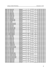Landtag von Baden-Württemberg Drucksache 15 / 6185 2007/08 211 - Baden-Baden (SKR) Werkreal-/Hauptschulen X 1 – X X 2007/08 211 - Baden-Baden (SKR) Realschulen 6 X 1 X X 2007/08 211 - Baden-Baden (SKR) Gymnasien 1 3 X X X 2007/08 212 - Karlsruhe (SKR) Werkreal-/Hauptschulen X 4 – X X 2007/08 212 - Karlsruhe (SKR) Realschulen 22 X 13 X X 2007/08 212 - Karlsruhe (SKR) Gymnasien – 12 X X X 2007/08 215 - Karlsruhe (LKR) Werkreal-/Hauptschulen X 4 – X X 2007/08 215 - Karlsruhe (LKR) Realschulen 93 X 23 X X 2007/08 215 - Karlsruhe (LKR) Gymnasien – 11 X X X 2007/08 216 - Rastatt (LKR) Werkreal-/Hauptschulen X 2 18 X X 2007/08 216 - Rastatt (LKR) Realschulen 33 X 13 X X 2007/08 216 - Rastatt (LKR) Gymnasien 1 8 X X X 2007/08 221 - Heidelberg (SKR) Realschulen 10 X 1 X X 2007/08 221 - Heidelberg (SKR) Gymnasien – 1 X X X 2007/08 222 - Mannheim (SKR) Werkreal-/Hauptschulen X 6 1 X X 2007/08 222 - Mannheim (SKR) Realschulen 29 X 13 X X 2007/08 222 - Mannheim (SKR) Gymnasien – 4 X X X 2007/08 225 - Neckar-Odenwald-Kreis (LKR) Realschulen 39 X 6 X X 2007/08 225 - Neckar-Odenwald-Kreis (LKR) Gymnasien 1 1 X X X 2007/08 226 - Rhein-Neckar-Kreis (LKR) Werkreal-/Hauptschulen X 9 – X X 2007/08 226 - Rhein-Neckar-Kreis (LKR) Realschulen 54 X 14 X X 2007/08 226 - Rhein-Neckar-Kreis (LKR) Gymnasien – 13 X X X 2007/08 231 - Pforzheim (SKR) Realschulen 29 X 9 X X 2007/08 231 - Pforzheim (SKR) Gymnasien 1 2 X X X 2007/08 235 - Calw (LKR) Werkreal-/Hauptschulen X 1 – X X 2007/08 235 - Calw (LKR) Realschulen 26 X 3 X X 2007/08 235 - Calw (LKR) Gymnasien 1 1 X X X 2007/08 236 - Enzkreis (LKR) Werkreal-/Hauptschulen X 2 – X X 2007/08 236 - Enzkreis (LKR) Realschulen 27 X 5 X X 2007/08 236 - Enzkreis (LKR) Gymnasien – 5 X X X 2007/08 237 - Freudenstadt (LKR) Werkreal-/Hauptschulen X 1 – X X 2007/08 237 - Freudenstadt (LKR) Realschulen 14 X 2 X X 2007/08 311 - Freiburg im Breisgau (SKR) Werkreal-/Hauptschulen X 1 – X X 2007/08 311 - Freiburg im Breisgau (SKR) Realschulen 17 X 3 X X 2007/08 311 - Freiburg im Breisgau (SKR) Gymnasien – 3 X X X 2007/08 315 - Breisgau-Hochschwarzwald (LKR) Werkreal-/Hauptschulen X 9 – X X 2007/08 315 - Breisgau-Hochschwarzwald (LKR) Realschulen 36 X 9 X X 2007/08 315 - Breisgau-Hochschwarzwald (LKR) Gymnasien – 4 X X X 2007/08 316 - Emmendingen (LKR) Werkreal-/Hauptschulen X 3 – X X 2007/08 316 - Emmendingen (LKR) Realschulen 7 X 3 X X 2007/08 316 - Emmendingen (LKR) Gymnasien – 4 X X X 2007/08 317 - Ortenaukreis (LKR) Werkreal-/Hauptschulen X 5 – X X 2007/08 317 - Ortenaukreis (LKR) Realschulen 84 X 9 X X 2007/08 317 - Ortenaukreis (LKR) Gymnasien – 2 X X X 2007/08 325 - Rottweil (LKR) Werkreal-/Hauptschulen X 1 – X X 2007/08 325 - Rottweil (LKR) Realschulen 20 X 8 X X 2007/08 325 - Rottweil (LKR) Gymnasien 1 1 X X X 2007/08 326 - Schwarzwald-Baar-Kreis (LKR) Werkreal-/Hauptschulen X 4 – X X 2007/08 326 - Schwarzwald-Baar-Kreis (LKR) Realschulen 23 X 4 X X 2007/08 326 - Schwarzwald-Baar-Kreis (LKR) Gymnasien 1 2 X X X 2007/08 327 - Tuttlingen (LKR) Werkreal-/Hauptschulen X 2 – X X 2007/08 327 - Tuttlingen (LKR) Realschulen 20 X 5 X X 2007/08 327 - Tuttlingen (LKR) Gymnasien 1 2 X X X 2007/08 335 - Konstanz (LKR) Werkreal-/Hauptschulen X 2 1 X X 2007/08 335 - Konstanz (LKR) Realschulen 36 X 5 X X 2007/08 335 - Konstanz (LKR) Gymnasien 1 1 X X X 2007/08 336 - Lörrach (LKR) Realschulen 41 X 4 X X 2007/08 336 - Lörrach (LKR) Gymnasien – 3 X X X 2007/08 337 - Waldshut (LKR) Werkreal-/Hauptschulen X 2 1 X X 2007/08 337 - Waldshut (LKR) Realschulen 14 X 7 X X 2007/08 337 - Waldshut (LKR) Gymnasien – 2 X X X 2007/08 415 - Reutlingen (LKR) Werkreal-/Hauptschulen X 7 – X X 2007/08 415 - Reutlingen (LKR) Realschulen 36 X 9 X X 2007/08 415 - Reutlingen (LKR) Gymnasien – 3 X X X 2007/08 416 - Tübingen (LKR) Werkreal-/Hauptschulen X 2 – X X 2007/08 416 - Tübingen (LKR) Realschulen 19 X 7 X X 2007/08 416 - Tübingen (LKR) Gymnasien – 6 X X X 2007/08 417 - Zollernalbkreis (LKR) Werkreal-/Hauptschulen X 3 – X X 2007/08 417 - Zollernalbkreis (LKR) Realschulen 52 X 7 X X 2007/08 421 - Ulm (SKR) Werkreal-/Hauptschulen X 1 – X X 2007/08 421 - Ulm (SKR) Realschulen 29 X 5 X X 2007/08 421 - Ulm (SKR) Gymnasien – 5 X X X 2007/08 425 - Alb-Donau-Kreis (LKR) Werkreal-/Hauptschulen X 1 – X X 2007/08 425 - Alb-Donau-Kreis (LKR) Realschulen 24 X 5 X X 10