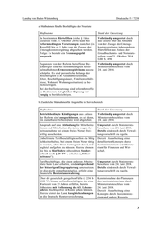 Landtag von Baden-Württemberg Drucksache 15 / 7238 a) Maßnahmen für alle Beschäftigten der Notariate Maßnahme Stand der Umsetzung In bestimmten Härtefällen (siehe § 1 des Vollständig umgesetzt durch Gesetzes vom 21. Oktober 2014) kann bei das Gesetz über das Absehen reformbedingten Versetzungen zunächst (im von der Zusage der Umzugs- Regelfall bis zu 1 Jahr) von der Zusage der kostenvergütung in besonderen Umzugskostenvergütung abgesehen werden. Härtefällen aus Anlass der Folge: Es besteht ein Trennungsgeld- Grundbuchamts- und Notariats- anspruch. reform vom 21. Oktober 2014, GBl. S. 496. Zugunsten von der Reform betroffener Be- Vollständig umgesetzt durch schäftigter sind bei reformbedingten Perso- Ministerratsbeschluss vom nalmaßnahmen Ermessensspielräume auszu- 24. Juni 2014. schöpfen. Es sind persönliche Belange der Beschäftigten (z.B. Gesundheitszustand, Alter, Beschäftigungsdauer, Familienverhält- nisse, Wohnort, Wohnungssituation) zu be- rücksichtigen. Bei der Stellenbesetzung sind reformbetroffe- ne Bedienstete bei gleicher Eignung vor- rangig zu berücksichtigen. b) Zusätzliche Maßnahmen für Angestellte im Servicebereich Maßnahme Stand der Umsetzung Betriebsbedingte Kündigungen aus Anlass Vollständig umgesetzt durch der Reform sind ausgeschlossen, es sei denn, Ministerratsbeschluss vom ein zumutbarer Arbeitsplatz wird abgelehnt. 24. Juni 2014. Anspruch auf eine Abfindung für Mitarbeite- Umgesetzt durch Ministerrats- rinnen und Mitarbeiter, die (etwa wegen Ar- beschluss vom 24. Juni 2014. beitsaufnahme bei einem freien Notar) frei- Details sind noch durch Verwal- willig ausscheiden. tungsvorschrift zu regeln. Unbefristete Tarifbeschäftigte sollen die Mög- Derzeit Ausarbeitung eines lichkeit erhalten, bei einem freien Notar tätig detaillierten Konzepts durch zu werden, ohne ihren Vertrag mit dem Land Justizministerium und Ministe- sogleich aufgeben zu müssen. Hierzu können rium für Finanzen und Wirt- Sie bis zu fünf Jahre unbezahlten Sonder- schaft. urlaub nach § 28 TV-L erhalten („Sicher- heitsnetz“). Tarifbeschäftigte, die einen anderen Arbeits- Umgesetzt durch Ministerrats- platz beim Land erhalten, sind entsprechend beschluss vom 24. Juni 2014. der bisherigen Eingruppierung umzusetzen. Details sind noch durch Verwal- Ist dies nicht zumutbar möglich, erfolgt eine tungsvorschrift zu regeln. finanzielle Besitzstandswahrung. Über die gesetzlich geregelten Fälle (§ 236 b Kenntnisnahme der Planungen SGB VI) hinaus sollen Beschäftigte, die eine des Justizministeriums durch Wartezeit von 35 Jahren erfüllen, bereits Ministerratsbeschluss vom frühestens mit Vollendung des 63. Lebens- 24. Juni 2014. jahres abschlagsfrei in Rente gehen können. Derzeit Ausarbeitung eines Hierzu leistet das Land Ausgleichzahlungen Konzepts durch Justizministe- an die Deutsche Rentenversicherung. rium und andere Ressorts. 3