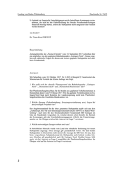 Landtag von Baden-Württemberg Drucksache 16 / 2635 9. Gedenkt sie finanzielle Entschädigungen an die betroffenen Kommunen vorzu- nehmen, die sich bei der Elektrifizierung der Strecke Freudenstadt-Eutingen finanziell beteiligt haben, sofern die Haltepunkte nicht umgesetzt oder bedient werden können? 14. 09. 2017 Dr. Timm Kern FDP/DVP Begründung Zeitungsberichte der „Neckar-Chronik“ vom 14. September 2017 schreiben über ein mögliches Aus des geplanten Bahnhaltepunkts „Eutingen-Nord“. Daraus erge- ben sich zahlreiche Fragen für diesen und weitere geplante Haltepunkte im Land- kreis Freudenstadt. Antwort Mit Schreiben vom 10. Oktober 2017 Nr. 3-3822.4-Murgtal/22 beantwortet das Ministerium für Verkehr die Kleine Anfrage wie folgt: 1. Wie stellt sich der aktuelle Planungsstand der Bahnhaltepunkte „Eutingen- Nord“, „Dornstetten-Aach“ und „Dornstetten-Heselwiesen“ dar? Der Planfeststellungsbeschluss für die beiden neu geplanten Verkehrsstationen in Dornstetten datiert vom 9. Februar 2017. Für die geplante Verkehrsstation in Eu- tingen-Nord liegt nach Kenntnis der Landesregierung noch kein Planfeststel- lungsbeschluss des Eisenbahn-Bundesamtes vor. 2. Welche Zusagen (Fahrplantaktung, Kreuzungsvereinbarung usw.) liegen bei den jeweiligen Projekten vor? Der Angebotsstandard für die oben genannten Haltepunkte ergibt sich aus dem „Zielkonzept 2025 für den Schienenpersonennahverkehr (SPNV) in Baden-Würt- temberg“, nach dem für den Streckenabschnitt Freudenstadt Hbf–Eutingen im Gäu ein Stundentakt vorgesehen ist, welcher derzeit schon besteht. Im Bereich der Kreuzungen gibt das Eisenbahnkreuzungsgesetz (EKrG) die Finanzierungs- anteile vor. Im Übrigen wird auf die Antwort zu Frage 7 verwiesen. 3. Welche notwendigen Zusagen stehen noch aus? In betrieblicher Hinsicht wurde vom Land eine stündliche Bedienung der neuen Haltepunkte zugesagt. Diese Zusage gilt grundsätzlich weiter. Bei den beiden Haltepunkten in Dornstetten steht derzeit die Aussage der DB Netz AG aus, dass beim vorgesehenen Fahrplankonzept die Haltepunkte auch bedient werden kön- nen. Gleiches gilt grundsätzlich auch für Eutingen Nord. Darüber hinaus fehlt noch, wie bei Antwort zu Frage 1 ausgeführt, der Planfeststellungsbeschluss. Im Übrigen wird auf die Antwort zu Frage 6 verwiesen. 2