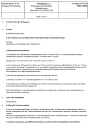 Handelsregister B des Amtsgerichts Hamburg Abteilung B - Vertraulich - Wiedergabe des aktuellen Registerinhalts Abruf vom 15.10.2018 12:06 Nummer 26 der Firma: HRB 129556 Seite 1 von 2 1. Anzahl der bisherigen Eintragungen: 7 2. a) Firma: EVENTIM Management AG b) Sitz, Niederlassung, Geschäftsanschrift, Empfangsberechtigte, Zweigniederlassungen: Hamburg Geschäftsanschrift: Rablstraße 26, 81669 München c) Gegenstand des Unternehmens: (1) Gegenstand des Unternehmens ist die Beteiligung an der CTS Eventim AG & Co. KGaA als persönlich haftende Gesellschafterin sowie die Geschäftsführung der CTS Eventim AG & Co. KGaA. (2) Gegenstand des Unternehmens der CTS Eventim AG & Co. KGaA ist: a) die Herstellung, der Verkauf, die Vermittlung, der Vertrieb und die Vermarktung von Eintrittskarten für Konzert-, Theater- , Kunst-, Sport- und andere Veranstaltungen im In- und Ausland, insbesondere in der Bundesrepublik Deutschland und im europäischen Ausland, insbesondere unter Verwendung elektronischer Datenverarbeitung und moderner Kommunikations- und Datenübertragungstechniken; b) die Planung, Organisation und Durchführung von Veranstaltungen aller Art; c) der Besitz und Betrieb von Veranstaltungsstätten im In- und Ausland; sowie d) die Herstellung, der Verkauf, die Vermittlung, der Vertrieb und die Vermarktung von merchandise-Artikeln und Reisen sowie direkt-marketing-Aktivitäten jeglicher Art. (3) Die Gesellschaft ist zu allen Geschäften und Maßnahmen berechtigt, die zur Erreichung des Gesellschaftszwecks notwendig und nützlich erscheinen. 3. Grund- oder Stammkapital: 50.000,00 EUR 4. a) Allgemeine Vertretungsregelung: Ist nur ein Vorstandsmitglied bestellt, so vertritt es die Gesellschaft allein. Sind mehrere Vorstandsmitglieder bestellt, so wird die Gesellschaft durch zwei Vorstandsmitglieder oder durch ein Vorstandsmitglied gemeinsam mit einem Prokuristen vertreten. Alleinvertretungsbefugnis kann erteilt werden. Vorstandsmitglieder können ermächtigt werden, im Namen der Gesellschaft mit sich als Vertreter eines Dritten Rechtsgeschäfte vorzunehmen. b) Vorstand, Leitungsorgan, geschäftsführende Direktoren, persönlich haftende Gesellschafter, Geschäftsführer,
