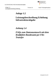 Az: Z30-SeV/288.3/1735/G14 Infrastrukturabgabe Anlage 1.2 Leistungsbeschreibung Erhebung Version 2.0 Stand: Finalangebotsphase Anlage 1.2 Leistungsbeschreibung Erhebung Infrastrukturabgabe Anhang 1.4 FAQs zum Datenaustausch mit dem Kraftfahrt-Bundesamt per File- Transfer Anhangseite 38 von 531