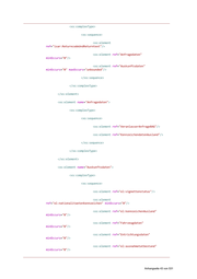 <xs:complexType> <xs:sequence> <xs:element ref="isar:ReturncodeUndReturntext"/> <xs:element ref="Anfragedaten" minOccurs="0"/> <xs:element ref="Auskunftsdaten" minOccurs="0" maxOccurs="unbounded"/> </xs:sequence> </xs:complexType> </xs:element> <xs:element name="Anfragedaten"> <xs:complexType> <xs:sequence> <xs:element ref="VeranlasserAnfrageBAG"/> <xs:element ref="KennzeichendatenAusland"/> </xs:sequence> </xs:complexType> </xs:element> <xs:element name="Auskunftsdaten"> <xs:complexType> <xs:sequence> <xs:element ref="el:vignettenstatus"/> <xs:element ref="el:nationalitaetenkennzeichen" minOccurs="0"/> <xs:element ref="el:kennzeichenAusland" minOccurs="0"/> <xs:element ref="Fahrzeugdaten" minOccurs="0"/> <xs:element ref="Entrichtungsdaten" minOccurs="0"/> <xs:element ref="el:ausnahmetatbestand" minOccurs="0"/> Anhangseite 43 von 531