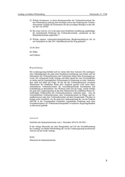 Landtag von Baden-Württemberg Drucksache 15 / 5740 23. Welche Kommunen, in denen Beratungsstellen der Verbraucherzentrale Ba- den-Württemberg ansässig sind, beteiligen sich an der Förderung der Verbrau- cherzentrale (Angabe der Kommunen mit den jeweiligen Beträgen in den Jah- ren 2011 bis 2014)? 24. Bis wann wird sie, wie in der grün-roten Koalitionsvereinbarung angekündigt, die institutionelle Förderung der Verbraucherzentrale „mindestens an den Bundesdurchschnitt angleichen“? 25. Welche eigenen verbraucherschutzpolitischen Bundesratsinitiativen hat sie seit Amtsantritt im Jahr 2011 federführend auf den Weg gebracht? 18. 09. 2014 Dr. Rülke und Fraktion Begründung Die Landesregierung befindet sich im vierten Jahr ihrer Amtszeit. Die umfangrei- chen Ankündigungen der grün-roten Koalitionsvereinbarung zum Schutz und zur Information der Verbraucherinnen und Verbraucher haben hohe Erwartungen ge- weckt. Die vorliegende Große Anfrage zielt daher darauf ab, eine Zwischenbilanz zu ziehen und die ursprünglichen Zielsetzungen in Erinnerung zu rufen. Insbeson- dere stellt sich dabei die Frage, ob das um das Verbraucherressort erweiterte Ministerium für Ländlichen Raum dem Anspruch gerecht wird, beim Quer- schnittsthema Verbraucherschutz die ressortübergreifende Koordination und Federführung zu übernehmen. Des Weiteren stellt sich die Frage, welche Erfolge die grün-rote Landesregierung in den dem Ministerium für Ländlichen Raum res- sortfremden Teilbereichen des Verbraucherschutzes verbuchen kann – etwa im wirtschaftlichen Verbraucherschutz, dem Verbraucherschutz im Pflege- und Ge- sundheitswesen oder dem Verbraucherschutz auf dem Energiemarkt. Überdies ist bislang nicht ersichtlich, wie die grün-rote Landesregierung die von der Fraktion GRÜNE in der Vergangenheit wiederholt vorgebrachte Forderung nach einer Gesamtkonzeption zur Verbraucherschutzpolitik in konkretes Regierungshandeln zu übersetzen gedenkt. Antwort Schreiben des Staatsministeriums vom 1. Dezember 2014 Nr. III-4281.: In der Anlage übersende ich unter Bezugnahme auf § 63 der Geschäftsordnung des Landtags von Baden-Württemberg die von der Landesregierung beschlossene Antwort auf die Große Anfrage. Krebs Ministerin im Staatsministerium 3