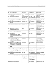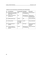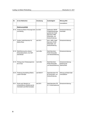 Landtag von Baden-Württemberg Drucksache 16 / 2637 Anlage )RUWVFKUHLEXQJGHV/XIWUHLQKDOWHSODQV0DQQKHLP 0DQDKPHQ]XU9HUEHVVHUXQJGHU/XIWTXDOLWlW6WDQG 1U $UWGHU0DQDKPH 8PVHW]XQJ =XVWlQGLJNHLW :LUNXQJ12 5DGYHUNHKU 0 )RUWIKUXQJ3XQNWH3URJUDPP VHLWII 6WDGW0DQQKHLP :LUNXQJDXI0RGDO6SOLW LQQHUVWlGWLVFKHU5DGYHUNHKU )% LQQHUVWlGWLVFK 9HUNHKUVSODQXQJ 0D /FNHQVFKOXVVSURJUDPP VHLWII 6WDGW0DQQKHLP :LUNXQJDXI0RGDO6SOLW 5DGYHUNHKUVDQODJHQDQ )% LQQHUVWlGWLVFK +DXSWYHUNHKUVVWUDHQ 9HUNHKUVSODQXQJ 0E 9HUEHVVHUXQJGHV5DGYHUNHKUVLQ VHLWII 6WDGW0DQQKHLP :LUNXQJDXI0RGDO6SOLW (UVFKOLHXQJVVWUDHQ )% LQQHUVWlGWLVFK ]%gIIQXQJYRQ(LQEDKQVWUDHQ 9HUNHKUVSODQXQJ )DKUUDGVWUDHQ 0F +HUVWHOOXQJYRQ$EVWHOODQODJHQ VHLW II 6WDGW0DQQKHLP :LUNXQJDXI0RGDO6SOLW )% LQQHUVWlGWLVFK 9HUNHKUVSODQXQJ 0G gIIHQWOLFKNHLWVDUEHLW]XU VHLW 6WDGW0DQQKHLP :LUNXQJDXI0RGDO6SOLW 5DGYHUNHKUVQXW]XQJ )% LQQHUVWlGWLVFK 9HUNHKUVSODQXQJ 0 5DGVFKQHOOZHJ+'0$/8 3ODQXQJVHLW 95516WDGW 5HGX]LHUXQJ3NZ$QWHLO II 0DQQKHLP)% (LQSHQGOHU 9HUNHKUVSODQXQJ 0 5DGVFKQHOOZHJ:HLQKHLP 3ODQXQJDEII 95516WDGW 5HGX]LHUXQJ3NZ$QWHLO 9LHUQKHLP 0DQQKHLP)% (LQSHQGOHU 9HUNHKUVSODQXQJ g319 0 $XVEDXGHU6%DKQ5KHLQ1HFNDU 5HGX]LHUXQJ3NZ$QWHLO (LQSHQGOHU 0D +EI0$ %DXHLQHVQHXHQ ELV 'H]HPEHU '%1HW] 5HGX]LHUXQJ3NZ$QWHLO %DKQVWHLJVIU6%DKQ (LQSHQGOHU 0E 6%DKQ$XVEDX$FKVH)UDQNIXUW ELV 'H]HPEHU /DQG%:951 5HGX]LHUXQJ3NZ$QWHLO %LEOLV0DQQKHLP (LQSHQGOHU 0F 6%DKQ$XVEDX0DQQKHLP ELV 'H]HPEHU /DQG %: 511 5HGX]LHUXQJ3NZ$QWHLO )UDQNHQWKDO0DLQ] 951 (LQSHQGOHU 0G 6%DKQ$XVEDX$FKVH0DQQKHLP ELV 'H]HPEHU /DQG%:951 5HGX]LHUXQJ3NZ$QWHLO /DGHQEXUJ+HGGHVKHLP (LQSHQGOHU 'DUPVWDGW 6