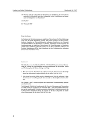 Landtag von Baden-Württemberg Drucksache 16 / 2637 4. Wie wird sie die Stadt Mannheim bei der Einhaltung der zulässigen Grenzwer- te für den Ausstoß von Feinstaub und Stickstoffdioxid unterstützen? Die Zuständigkeit für die Erstellung und Fortschreibung von Luftreinhalteplänen liegt in Baden-Württemberg bei den Regierungspräsidien. Diese identifizieren und entwickeln gemeinsam mit den betroffenen Städten und Gemeinden und der Öffentlichkeit Gesamtkonzepte für die schnellstmögliche Einhaltung der Luftqua- litätsgrenzwerte. Hierüber hinaus setzt sich die Landesregierung auf allen poli- tischen Ebenen für die Schaffung wirksamer Instrumente der Luftreinhaltung ein. Beispielhaft sei auf das bundespolitische Engagement der Landesregierung Ba- den-Württemberg hinsichtlich der dringend benötigten Fortschreibung der 35. Bundes-Immissionsschutzverordnung zur Schaffung einer neuen („blauen“) Plakette und die diversen, landespolitischen Fördermöglichkeiten, z. B. im Rah- men der Elektromobilität, verwiesen. 5. Welche Auffassung vertritt sie in der Diskussion um mögliche Fahrverbote für Dieselfahrzeuge in Mannheim? 6. Wie wird sie konkret gegen drohende Fahrverbote für Dieselfahrzeuge in Mannheim vorgehen? Die Fragen 5 und 6 werden aufgrund des inhaltlichen Zusammenhangs gemein- sam beantwortet. In Mannheim wird der zulässige Jahresmittelwert zum Schutz der menschlichen Gesundheit für die Belastung mit Stickstoffdioxid in straßennahen Belastungsbe- reichen weiterhin überschritten. Daher müssen alle Maßnahmen die schnellstmög- liche Einhaltung des Immissionsgrenzwertes für Stickstoffdioxid zum Ziel haben. Gleichzeitig zielt die Landesregierung darauf, Verkehrsverbote zu vermeiden. Unabdingbar hierfür ist, dass geeignete Maßnahmen gefunden werden, um den Grenzwert von 40 µg/m³ schnellstmöglich einzuhalten. Ein seitens des Regierungspräsidiums beauftragtes Gutachten vom Oktober 2016 zeigt, dass die Einhaltung des zulässigen Jahresmittelwertes für Stickstoffdioxid auch bis 2020 nur mit weiteren Maßnahmen erreicht werden kann. Mit der Fort- schreibung der bestehenden Umweltzonenregelung („blaue Umweltzone“) könnte die Grenzwerteinhaltung schon vorher sichergestellt werden. Auch wäre die Grenzwerteinhaltung mit einer Reduktion des Verkehrsaufkommens um etwa sechs Prozent im Bereich der Messstelle möglich. Mit einer Vielzahl kleinerer Maßnahmen im innerstädtischen Bereich hat das Re- gierungspräsidium Karlsruhe erste Alternativen zu verkehrsbeschränkenden Maß- nahmen skizziert. Gezielt soll auf diese Weise so die notwendige Verringerung des Verkehrsaufkommens angestrebt werden. 7. Wie viele der insgesamt zugelassenen Dieselfahrzeuge in Mannheim erfüllen die aktuelle Euro 6-Norm für Dieselmotoren nicht? Nach einer Veröffentlichung des Kraftfahrbundesamtes zu den Fahrzeugzulassun- gen, waren in der Stadt Mannheim zum 1. Januar 2017 insgesamt ca. 147.000 Per- sonenkraftwagen zugelassen. Hiervon sind etwa 66 Prozent (97.000) Pkw mit Ot- to-Motoren (Benziner) und etwa 33 Prozent (48.500) Diesel-Pkw. Die Anzahl der Diesel-Pkw, welche nicht der Euronorm 6 entsprechen, lag bei etwa 35.000 Pkw, was rund 72 Prozent der Diesel-Pkw und rund 24 Prozent der Gesamt-Pkw ent- spricht. Mit der fortlaufenden Flottenerneuerung sinkt der Anteil an den Gesamt- Pkw pro Jahr um 3 bis 4 Prozent, der Anteil an den Diesel-Pkw um rund 10 Pro- zent pro Jahr. 4