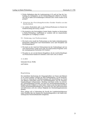 Landtag von Baden-Württemberg Drucksache 15 / 2796 5. Welche Maßnahmen plant die Landesregierung (z. B. auch im Zuge der Aus- handlung des Solidarpakts), um die Gleichstellungsziele effektiver zu fördern und, falls sie dabei Zielvereinbarungen in Betracht zieht, welche erachtet sie als geeignet? V. Situation des Forschungsbereiches Gender Studies an den Hochschulen 1. An welchen Hochschulen gibt es eine Professur/Professuren im Bereich der Genderforschung und wenn ja, welche? 2. Wie beurteilt sie die Notwendigkeit, Gender Studies Angebote an Hochschulen in Baden-Württemberg verpflichtend zu verankern und ein entsprechendes Lehrangebot zur Verfügung zu stellen? VI. Förderung von Professorinnen 1. Wie hoch ist die Anzahl der Professorinnen an den baden-württembergischen Hochschulen (differenziert nach Hochschularten sowie nach Disziplinen und Besoldungsgruppen)? 2. Wie hoch war der Anteil der Professorinnen bei den Neuberufungen und wie viele Professorinnen wurden davon über das Professorinnen-Programm sowie das Ausbauprogramm Hochschule 2012 berufen? 3. Was plant sie, um von den hinteren Rangplätzen, die das Land bei Berufungen von Professorinnen bundesweit einnimmt, weiter nach vorne zu rücken? 11. 12. 2012 Schmiedel, Rivoir, Wölfle und Fraktion Begründung Die tatsächliche Durchsetzung der Chancengleichheit von Frauen und Männern ist ein zentral wichtiges Anliegen der SPD-Landtagsfraktion. An den Hochschu- len wird die Förderung der Gleichberechtigung und Gleichstellung von Frauen und Männern insbesondere durch die Gleichstellungsbüros und die Gleichstel- lungsbeauftragten wahrgenommen. Allerdings wird immer wieder von schwieri- gen Arbeitsbedingungen berichtet, mit denen die Gleichstellungsbeauftragten zu kämpfen und ihre Aufgaben zu leiden haben. Zuletzt wurde dies durch den Rück- tritt der Gleichstellungsbeauftragten der Universität Ulm, ihrer Stellvertreterinnen und Stellvertreter sowie der weiteren Mitglieder der Gleichstellungskommission deutlich. Diese Anfrage soll in Vorbereitung der Novelle des Landeshochschulgesetzes einen Überblick über die Situation der Gleichstellungsstellen in der baden-würt- tembergischen Hochschullandschaft ermöglichen. 3