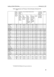 Landtag von Baden-Württemberg Drucksache 16 / 5425 Tabelle: Übernahmequote und Übergang in Masterstudiengänge (Studienjahr 2016/ 2017)5 =DKOGHU $Q]DKOGHU (LQHQ$UEHLWVSODW]EHNRPPHQKDEHQ (LQ+RFK JHVDPW HUIROJUHL 5FNPHO VFKXOVWXGLXP FKHQ$E GXQJHQ KDEHQDXIJH VFKOVVH GHU$EVRO QRPPHQ LP6WX YHQWHQ DOV9ROO GLHQMDKU EHUGHQ LQGHU LQHLQHU LQHLQHUDQ JHVDPW ]HLWVWXGLXP 9HUEOHLE $XVELO DQGHUHQ GHUHQ)LUPD DXVHLJHQHU %DVLVIU GXQJVVWlWWH )LUPD(LQ (LQULFKWXQJ 0RWLYDWLRQ GLH3UR E]ZLP ULFKWXQJ ZHLOLQ$XV ]HQWELO .RQ]HUQ REZRKOLQ ELOGXQJV GXQJHQ $XVELO VWlWWHNHLQ GXQJVVWlWWH $UEHLWVSODW] $UEHLWVSODW] YRUKDQGHQ YRUKDQGHQ ZDU ZDU +HLGHQKHLP 7HFKQLN :LUWVFKDIW 6R]LDOZHVHQ +HLOEURQQ :LUWVFKDIW .DUOVUXKH 7HFKQLN :LUWVFKDIW /|UUDFK 7HFKQLN :LUWVFKDIW 0DQQKHLP 7HFKQLN :LUWVFKDIW 0RVEDFK 7HFKQLN :LUWVFKDIW 6WXWWJDUW 7HFKQLN :LUWVFKDIW 6R]LDOZHVHQ 6WXWWJDUW+RUE 7HFKQLN 9LOOLQJHQ6FKZHQ QLQJHQ :LUWVFKDIW 6R]LDOZHVHQ =XVDPPHQ GDYRQ 7HFKQLN :LUWVFKDIW 6R]LDOZHVHQ _____________________________________ 5 Die Statistik für das Studienjahr 2018 liegt noch nicht final vor. 13