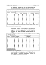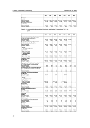 Landtag von Baden-Württemberg Drucksache 16 / 8663 2006 2007 2008 2009 2010 2011 2012 Einwohner (Anzahl) Baden-Württemberg 10.738.753 10.749.755 10.749.506 10.744.921 10.753.880 10.512.441 10.569.111 Pforzheim, Stadtkreis 119.156 119.423 119.839 119.788 119.781 115.211 116.425 Gewerbesteuereinnahmen (in Mill. EUR) Baden-Württemberg 5.734,9 6.234,5 6.222,1 4.683,9 4.733,7 6.059,3 6.593,8 Pforzheim, Stadtkreis 52,2 65,4 55,5 46,3 48,4 77,3 105,1 Tabelle 2: Ausgewählte Kennzahlen Pforzheim und Baden-Württemberg 2013 bis 2019 4