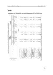 20 14 Gewerbean- und -abmeldungen *) nach Wirtschaftsbereichen und Kreisen/Bezirken in Baden-Württemberg Jahr 2009 Anmeldung Abmeldung Nr. Anlage 1 der insgesamt dar. Neuerrichtung insgesamt dar. Aufgabe Klas- Wirtschaftszweige sifika- Veränd. Veränd. Veränd. Veränd. tion 1) Anzahl gegenüber Anzahl gegenüber Anzahl gegenüber Anzahl gegenüber Vorjahr Vorjahr Vorjahr Vorjahr in % in % in % in % Rottweil Landtag von Baden-Württemberg A Land- u. Forstwirtschaft, Fischerei .......................... 6 - 25,0 5 - 28,6 8 - 27,3 5 - 44,4 B Bergbau u.Gew.v.Steinen u.Erden .... 0 X 0 X 0 X 0 X C Verarbeitendes Gewerbe ............. 83 5,1 67 24,1 71 - 29,0 49 - 24,6 D Energieversorgung .................. 142 34,0 141 33,0 6 500,0 3 200,0 E Wasserversorgung;Entsorg. Beseit.v.Umweltverschm. ............ 2 - 33,3 1 - 50,0 1 - 66,7 1 X F Baugewerbe ......................... 86 21,1 58 9,4 69 - 5,5 55 5,8 G Handel; Instandh.u.Rep.v.Kfz ....... 375 16,5 298 11,2 302 - 7,9 242 - 11,7 H Verkehr und Lagerei ................ 37 27,6 24 9,1 40 14,3 24 - 17,2 I Gastgewerbe ........................ 97 - 14,9 59 - 83 - 30,8 64 - 28,9 J Information und Kommunikation ...... 47 - 4,1 41 7,9 35 - 10,3 29 - 12,1 K Finanz-,Versicherungs- Dienstleistg. ...................... 73 - 3,9 62 - 6,1 64 - 32,6 45 - 45,1 L Grundstücks-u. Wohnungswesen ....... 24 33,3 19 46,2 8 - 57,9 7 - 58,8 M Freiberufliche,wiss.u. techn.Dienstleistg. ................ 126 16,7 103 9,6 75 - 17,6 50 - 28,6 N Sonst.Wirtschaftl.Dienstleistg. .... 107 0,9 92 12,2 96 - 6,8 71 - 9,0 O Öff. Verwaltung,Verteidigung, Sozialversicherung ................. 0 X 0 X 0 X 0 X P Erziehung u. Unterricht ............ 22 15,8 20 17,6 23 64,3 15 36,4 Q Gesundheits-u.Sozialwesen .......... 13 - 43,5 12 - 42,9 11 22,2 7 - 22,2 R Kunst,Unterhaltung u.Erholung ...... 35 - 10,3 27 - 12,9 23 - 20,7 18 - 33,3 S Sonst.Dienstleistg. ................ 158 95,1 133 95,6 83 22,1 73 37,7 A-S Insgesamt .......................... 1 433 14,5 1 162 16,1 998 - 12,3 758 - 15,8 *) Ohne Automatenaufsteller und Reisegewerbe. - 1) Klassifikation der Wirtschaftszweige, Ausgabe 2008 (WZ 2008), Kurzbezeichnung. Gewerbean- und -abmeldungen nach Wirtschaftsbereichen im LKR Rottweil 2009 Drucksache 16 / 8590
