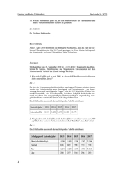 Landtag von Baden-Württemberg Drucksache 16 / 4725 10. Welche Maßnahmen plant sie, um den Straßenverkehr für Fahrradfahrer und andere Verkehrsteilnehmer sicherer zu gestalten? 29. 08. 2018 Dr. Fiechtner fraktionslos Begründung Am 27. April 2018 berichteten die Stuttgarter Nachrichten, dass die Zahl der ver- letzten Fahrradfahrer im Jahr 2017 stark gestiegen ist. Diese Kleine Anfrage soll die Situation der verletzten Fahrradfahrer näher beleuchten. Antwort Mit Schreiben vom 26. September 2018 Nr. 3-1132.4/161/1 beantwortet das Minis- terium für Inneres, Digitalisierung und Migration im Einvernehmen mit dem Ministerium für Verkehr die Kleine Anfrage wie folgt: 1. Wie viele Unfälle gab es seit 2000, in die auch Fahrräder verwickelt waren (bitte unterteilt in Jahre)? Zu 1.: Da sich die Erfassungsmodalitäten in dem angefragten Zeitraum geändert haben, werden die Verkehrsunfälle unter Beteiligung von Fahrradnutzern – zur Beant- wortung dieser und nachfolgender Fragen – erst ab 2013 abgebildet. Zudem kön- nen Kleinstunfälle, also Verkehrsunfälle, bei denen lediglich Sachschaden ent- stand und denen eine nur geringfügige Ordnungswidrigkeit zugrunde lag, man- gels detaillierter statistischer Daten, nicht dargestellt werden. Die Unfallzahlen lassen sich der nachfolgenden Tabelle entnehmen: .DOHQGHUMDKU )DKUUDGXQIlOOH 2. Wie gliedern sich die Unfälle, in die Fahrradfahrer verwickelt waren, seit 2000 auf (Rad ohne weiteren Verkehrsteilnehmer, Rad–Rad, Rad–Auto, Rad–Lkw)? Zu 2.: Die Unfallzahlen lassen sich der nachfolgenden Tabelle entnehmen: 8QIDOOJHJQHU,.DOHQGHUMDKU 2KQH DOOHLQEHWHLOLJW )DKUUDG 3NZ /NZ 2