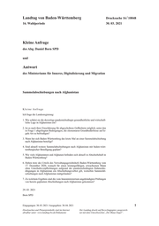Landtag von Baden-Württemberg Drucksache 16 / 10048 Begründung Nach der erst kürzlich veröffentlichten Entscheidung des Verwaltungsgerichtshofs Baden-Württemberg vom 17. Dezember 2020 sind alleinstehende, gesunde Män- ner im arbeitsfähigen Alter aufgrund der durch die Coronapandemie verschlech- terten Lebensbedingungen voraussichtlich nicht in der Lage, ihre elementaren Grundbedürfnisse in Afghanistan auf legale Art zu befriedigen. Aufgrund dieses Urteils hatte das Innenministerium angekündigt, weitere Abschiebungen nach Af- ghanistan zu prüfen. Diese Kleine Anfrage soll klären, zu welchem Ergebnis diese Prüfung gekommen ist und ob weitere Abschiebungen stattgefunden haben oder geplant sind. Antwort Mit Schreiben vom 27. April 2021 Nr. IM4-1362-49/2 beantwortet das Ministeri- um für Inneres, Digitalisierung und Migration die Kleine Anfrage wie folgt: 1. Wie schätzt sie die derzeitige pandemiebedingte gesundheitliche und wirtschaft- liche Lage in Afghanistan ein? 2. Ist es nach ihrer Einschätzung für abgeschobene Geflüchtete möglich, unter den in Frage 1 abgefragten Bedingungen, die elementaren Grundbedürfnisse auf legale Art zu befriedigen? Zu 1. und 2.: Die pandemiebedingte, gesundheitliche und wirtschaftliche Lage im Herkunfts- land wird im Rahmen der Prüfung von zielstaatsbezogenen Abschiebungsverboten vollumfänglich berücksichtigt. Für die Prüfung von zielstaatsbezogenen Abschiebungsverboten im Asylverfah- ren ist das Bundesamt für Migration und Flüchtlinge (BAMF) als Bundesbehörde zuständig. Das Land Baden-Württemberg hat hierbei keine eigene Prüfungs- und Entscheidungskompetenz. Die Ausländerbehörden sind an die Entscheidung des BAMF als Bundesbehörde gebunden. Sofern kein Asylantrag gestellt wurde, er- folgt die im Einzelfall zu prüfende Entscheidung über die zielstaatsbezogenen Abschiebungsverbote durch die Ausländerbehörden unter Beteiligung des BAMF. 3. Wann hat sich Baden-Württemberg das letzte Mal an einer Sammelabschiebung nach Afghanistan beteiligt? Zu 3.: Baden-Württemberg hat sich zuletzt am 7. April 2021 an einer Abschiebung nach Afghanistan mit der Abschiebung einer Person beteiligt. 4. Sind aktuell weitere Sammelabschiebungen nach Afghanistan mit baden-würt- tembergischer Beteiligung geplant? Zu 4.: Durch den Bund sind auch weiterhin Abschiebungen nach Afghanistan geplant, an denen sich das Land Baden-Württemberg beteiligen wird, sofern es Personen aus der Gruppe der Identitätsverweigerer, Straftäter oder Gefährder gibt, bei denen unter Berücksichtigung der Rechtslage die Voraussetzungen für eine Abschiebung vorliegen. 2