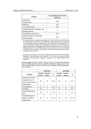 Landtag von Baden-Württemberg Drucksache 16 / 7562 Im aktuellen Schuljahr wurde eine Erhebung zur Unterrichtssituation für die 48. Ka- lenderwoche 2019 durchgeführt. Die Ergebnisse dieser Erhebung werden voraus- sichtlich bis Mitte Februar ausgewertet sein. 3. Wie viel Unterricht ist an den Schulen im Ostalbkreis in den Schuljahren 2018/2019 und 2019/2020 ausgefallen (insgesamt und aufgeschlüsselt nach Schulart sowie Pflichtunterricht und Ergänzungsbereich)? Der schulartspezifische Netto-Unterrichtsausfall in den Stichwochen der drei Er- hebungen des Schuljahres 2018/2019 im Ostalbkreis ist in der folgenden Tabelle dargestellt. Unterrichtsausfall in Prozent Schulart (Ostalbkreis) KW 46/2018 KW 7/2019 KW 23/2019 Grundschule (einschl. Grundschule im 0,6 0,9 0,7 Verbund mit einer Gemeinschaftsschule) Werkreal-/Hauptschule 2,3 4,4 2,6 Realschule 3,7 4,9 6,3 Gemeinschaftsschule Sek. I 1,5 3,8 2,5 Sonderpädagogisches Bildungs- und Beratungszentrum mit Förderschwerpunkt 1,9 2,2 0,7 Lernen Allg. bildendes Gymnasium 4,5 7,5 8,7 Berufliche Schule (im Geschäftsbereich 9,9 4,9 4,4 des KM) Alle Schularten 4,1 4,2 4,3 4. Wie gestaltete bzw. gestaltet sich der Versorgungsgrad der Schulen in den Schuljahren 2018/2019 und 2019/2020 im Ostalbkreis (insgesamt und aufge- schlüsselt nach Schulart)? In der folgenden Tabelle sind die mittleren Versorgungsgrade der Schulen im Schuljahr 2018/2019 zum Statistikstichtag im Oktober zusammengestellt. Erste Daten zur Unterrichtsversorgung im Schuljahr 2019/2020 liegen nach Auswer- tung der Hauptstatistik 2019 voraussichtlich bis Mitte Februar 2020 vor. Daten- grundlage für Grund-, Haupt-, Werkreal-, Real- und Gemeinschaftsschulen sowie für Sonderpädagogische Bildungs- und Beratungszentren sind die Werte des Staatlichen Schulamts Göppingen. Bei Gymnasien und Beruflichen Schulen be- ziehen sich die Angaben auf den Regierungsbezirk Stuttgart. 4