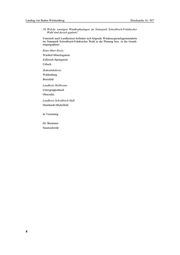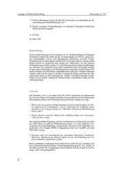 Landtag von Baden-Württemberg Drucksache 16 / 857 9. Welche Erkenntnisse liegen ihr über den Wertverlust von Immobilien im Zu- sammenhang mit Windkraftanlagen vor? 10. Welche sonstigen Windkraftanlagen im Naturpark Schwäbisch-Fränkischer Wald sind derzeit geplant? 21. 10. 2016 Dr. Merz AfD Begründung Derzeit laufen Planungen zur Errichtung von vier Windkraftanlagen im Naturpark Schwäbisch-Fränkischer Wald auf der im Regionalplan als WN-01 ausgewiese- nen Vorrangfläche „Greut“ auf Spiegelberger Gemarkung zwischen Vorder- büchelberg und Neufürstenhütte (Großerlach). Die beiden äußeren Anlagen sollen hierbei jeweils im Staatswald und weniger als 1.000 Meter von der nächsten Wohnbebauung errichtet werden. Vor dem Hintergrund der jüngsten Äußerungen des Ministers für Ländlichen Raum und Verbraucherschutz soll geklärt werden, ob die weiteren Planungen in der bisherigen Form eingestellt werden können. Ob- wohl die Bürger der betroffenen Gemeinden bereits über das Vorhaben informiert wurden, stellt sich die Frage, in welchem Umfang die Bürger auch über die reine Information hinaus an der Entstehung der Anlagen verbindlich beteiligt werden. Weiter soll die Kleine Anfrage der Beantwortung verschiedener Fragen der Be- völkerung dienen. Antwort Mit Schreiben vom 15. November 2016 Nr. 4-4516 beantwortet das Ministerium für Umwelt, Klima und Energiewirtschaft im Einvernehmen mit dem Ministerium für Ländlichen Raum und Verbraucherschutz die Kleine Anfrage wie folgt: 1. Wird sie für die geplanten Windkraftanlagen auf der im Regionalplan als WN- 01 ausgewiesenen Vorrangfläche „Greut“ Staatswald zur Verfügung stellen, obwohl zwei der Anlagen weniger als 1.000 Meter Abstand zur Wohnbebauung haben sollen? 2. Welche Ansicht vertritt der Minister für Ländlichen Raum und Verbraucher- schutz in dieser Frage? Die aktuell getroffene Regelung, nach der bei Standorten im Staatswald, die näher als 1.000 Meter zur nächsten Wohnbebauung liegen, vor einer möglichen Ver- marktung eine Einzelfallprüfung vorgenommen wird, gilt nur für zukünftige Ver- pachtungen. Den Standort RMK-23 Spiegelberg Greut hat ForstBW seit April 2014 unter Vertrag. 3. Inwiefern sollen die Gemeinderäte der Gemeinden Spiegelberg, Großerlach, Wüstenrot, Mainhardt und Sulzbach (Murr) bei der Verwirklichung des Pro- jekts verbindlich eingebunden werden? Beim zuständigen Landratsamt Rems-Murr-Kreis wurde für das Vorhaben noch kein immissionsschutzrechtlicher Genehmigungsantrag gestellt. Ein solcher ist für Mitte bis Ende 2017 angekündigt. Zurzeit befindet sich das Projekt in der Pla- nungs- und Untersuchungsphase. 2