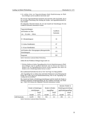 Landtag von Baden-Württemberg Drucksache 16 / 1171 8. Wie viele TigeR-Einrichtungen ([Kinder-]Tagespflege in anderen geeigneten Räumen) gibt es im Wahlkreis Ettlingen und im Landkreis Karlsruhe und wie hoch ist der Anteil derer, die durch das Land Baden-Württemberg gefördert werden? 07. 12. 2016 Neumann CDU Antwort Mit Schreiben vom 9. Januar 2017 Nr. 31-6930.15/107 beantwortet das Ministe- rium für Kultus, Jugend und Sport im Einvernehmen mit dem Ministerium für Finanzen die Kleine Anfrage wie folgt: Ich frage die Landesregierung: 1. Wie bewertet sie die Betreuungsquote der Kindertagesstätten im Wahlkreis Ett- lingen und im Landkreis Karlsruhe im landesweiten Vergleich? Die Beantwortung der Anfrage basiert auf den Erhebungen der amtlichen Kinder- und Jugendhilfestatistik Teil III. 1 und III. 3 zum Stichtag 1. März 2016. Der Wahl- kreis Ettlingen ist keine statistisch definierte Raumschaft. Die vorliegende Fra- gestellung wird daher anhand der Daten des Landkreises Karlsruhe beantwortet (dies gilt auch für die Antworten zu den Ziffern 2 und 4 bis 8). Die Betreuungssituation der Kinder an Kindertageseinrichtungen wird anhand der sogenannten Besuchsquote dargestellt. Die Besuchsquote bezeichnet die Anzahl der Kinder in Kindertageseinrichtungen je 100 Kinder der gleichen Altersgruppe. Besuchsquoten werden in der Kinder- und Jugendhilfestatistik getrennt nach Altersgruppen berechnet. Im Landkreis Karlsruhe betrug die Besuchsquote in der Altersgruppe der Kinder unter 3 Jahren zum 1. März 2016 25,4 Prozent und in der Altersgruppe der Kinder ab 3 bis unter 6 Jahren 95,0 Prozent. Im gesamten Land betrug die Besuchsquote bei den Kindern unter 3 Jahren 24,1 Prozent und bei den Kindern im Alter von 3 bis unter 6 Jahren 94,4 Prozent. Sowohl die Besuchsquote von Kindertageseinrichtungen der Kinder unter 3 Jah- ren als auch die der Kinder von 3 bis unter 6 Jahren liegen über den landesdurch- schnittlichen Besuchsquoten. 2. Wie hat sich die Betreuungsquote im Wahlkreis Ettlingen und im Landkreis Karlsruhe in den letzten fünf Jahren verändert? Die Betreuungsquote bezeichnet die Anzahl der Kinder in Kindertageseinrichtun- gen und in öffentlich geförderter Kindertagespflege je 100 Kinder der gleichen Altersgruppe. Die Betreuungsquoten (bereinigt um Doppelzählungen von Kindern, die unter- schiedliche Betreuungsangebote nebeneinander wahrnehmen), haben sich im Landkreis Karlsruhe an den Stichtagen 1. März der letzten Jahre wie folgt ent- wickelt: 2