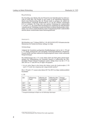 Landtag von Baden-Württemberg Drucksache 16 / 7479 L 171 Jahr Vollsperrung halbseitig halbseitig Tonnage- [Tage] mit Licht- ohne Licht- beschränkt* signalanlage signalanlage [Tage] [Tage] [Tage] 2010 0 0 0 0 2011 0 0 0 0 2012 146 0 0 0 2013 0 0 0 0 2014 0 0 0 0 2015 0 2 0 0 2016 0 5 0 0 2017 0 0 0 0 2018 25 0 28 0 2019 0 3 0 0 Summe 171 10 28 0 * Tonnagebeschränkungen erfolgten nur mit halbseitigen Sperrungen 3. Wie hoch waren die finanziellen Mittel, die das Land Baden-Württemberg in den vergangenen zehn Jahren in die L 170 und L 171 investiert hat (aufgeschlüsselt in die Bereiche Straßenbau, Naturschutz, Geologie und Sicherheit) und welche Maßnahmen wurden durchgeführt? In den letzten zehn Jahren wurden verschiedene Fels- und Fahrbahnsicherungs- maßnahmen sowie Wiederherstellungsmaßnahmen nach Rutschungen durchge- führt. Die Kosten für Straßenbau, Geologie und Sicherheit lassen sich daher nicht einzeln aufführen. Jede in den letzten zehn Jahren an der L 170 und L 171 ausge- führte Maßnahme betraf alle drei Bereiche. Für die L 170 wurden in den letzten zehn Jahren insgesamt 2,436 Mio. Euro (brutto) Landesmittel für Sanierungen und Felssicherungsmaßnahmen investiert, für die L 171 waren es 0,659 Mio. Euro (brutto). Zusätzlich wurden in den Jahren 2018/2019 im Zuge der Tiefbauarbeiten der Gemeinde Wutach in der Ortsdurchfahrt Ewattingen 0,335 Mio. Euro (brutto) für die Erneuerung von Teilen des Fahrbahnaufbaus investiert. Für Naturschutzmaßnahmen wurden an beiden Landesstraßen in den vergangenen Jahren keine Landesmittel durch die Straßenbauverwaltung eingesetzt. 4. Wurden bei sämtlichen Bauarbeiten das Bundesnaturschutzgesetz, das Natur- schutzgesetz Baden-Württemberg und die Naturschutzverordnung Wutach- schlucht eingehalten bzw. wurden Ausnahmegenehmigungen eingeholt? Bei allen Maßnahmen, die durch die jeweiligen Landkreise Breisgau-Hochschwarz- wald, Waldshut und Schwarzwald-Baar oder durch das Regierungspräsidium Freiburg ausgeführt wurden, wurden das Bundesnaturschutzgesetz, Naturschutz- gesetz Baden-Württemberg sowie die Naturschutzverordnung Wutachschlucht be- achtet. Bei Maßnahmen, die den direkten Straßenkörper betroffen haben, wurden keine naturschutzrechtlichen Genehmigungen eingeholt, da sie als Tätigkeiten und Arbeiten an Brücken und straßenbaulichen Anlagen keinen Eingriff gemäß § 14 Abs. 1 BNatSchG darstellen. Unterhaltung und Erhaltung sind als integrale Bestandteile des Betriebs der Verkehrsanlage und als betriebsbedingte Wirkungen bereits im Zulassungsverfahren behandelt und somit durch die Zulassungsent- scheidung bewältigt. 4