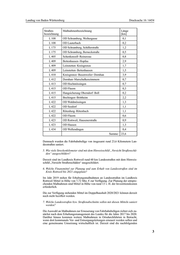 Landtag von Baden-Württemberg Drucksache 16 / 6454 Begründung In der Bevölkerung kommt es vermehrt zu Beschwerden über die schlechte Stra- ßenqualität bei Landstraßen im Kreis Rottweil. Die Kleine Anfrage soll die Qua- lität der Landstraßen im Kreis Rottweil wiederspiegeln und Aufschluss über die geplanten Investitionskosten in die Sanierung und den Neubau von Landstraßen im Kreis Rottweil geben. Antwort Mit Schreiben vom 18. Juli 2019 Nr. 2-3945.40-10/74*1 beantwortet das Ministe- rium für Verkehr die Kleine Anfrage wie folgt: 1. Wie viele Kilometer Landesstraßen befinden sich im Kreis Rottweil? Das Landesstraßennetz im Landkreis Rottweil weist eine Gesamtlänge von 185 Ki- lometern auf. 2. Wie viele Streckenkilometer davon befinden sich in schlechtem bis sehr schlech- tem Zustand? 3. Wie viele Streckenkilometer in gutem bis sehr gutem Zustand? Aufgrund des Sachzusammenhangs werden die Fragen 2 und 3 gemeinsam beant- wortet: Alle vier Jahre wird an den Landesstraßen die Zustandserfassung und -bewertung (ZEB) durchgeführt. Die aktuellsten Daten für Landesstraßen sind in der ZEB 2016 erfasst. Hierbei wurde im Landkreis Rottweil eine Streckenlänge von 148 Kilome- tern ausgewertet und mit Noten von 1,0 bis 5,0 bewertet. In dieser Auswertung ist die zur L 424 abgestufte Straßenverbindung zwischen Horb am Neckar und Rott- weil (ehemals B 14) nicht enthalten. Die Verteilung im Landkreis Rottweil stellt sich wie folgt dar: Verteilung im ZEB 2016 Zustandsnotenbereich Landkreis Rottweil [km] sehr guter Zustand 1,0 bis 1,5 9 guter Zustand 1,5 bis 2,5 37 mittlerer Zustand 2,5 bis 3,5 30 schlechter Zustand 3,5 bis 4,5 31 sehr schlechter Zustand 4,5 bis 5,0 41 Von den ausgewerteten Strecken befinden sich demnach rund 72 Kilometer in schlechtem bis sehr schlechtem Zustand und rund 46 Kilometer in gutem bis sehr gutem Zustand. 4. Wie viele Straßenkilometer und welche Landesstraßen wurden seit dem Jahr 2009 im Kreis Rottweil geplant und saniert? Seit dem Jahr 2009 wurden bei nachfolgenden Landesstraßenmaßnahmen Fahr- bahnbelagserneuerungen geplant und anschließend umgesetzt: 2