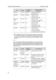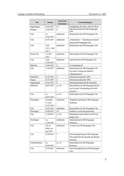 Landtag von Baden-Württemberg Drucksache 16 / 4607 $Q]DKOGHU $XIJHWUHWHQH%DQGV 2UW 'DWXP 7HLOQHKPHU /LHGHUPDFKHU %ODXEHXUHQ XQEHNDQQW *HEXUWVWDJVIHLHUPLW%DQG Ä.RGH[)UHL³ %< %ODXEHXUHQ XQEHNDQQW Ä%DUEDURVVD³ %: Ä.RGH[)UHL³ %< Ä.RPPDQGR6NLQ³ %: %ODXEHXUHQ Ä.RGH[)UHL³ %< 6HLHQ Ä1DNHGEXWDUPHG³ XQEHNDQQW Ä.RPPDQGR6NLQ³ %: %DG:XU]DFK Ä.RGH[)UHL³ %< 6HLEUDQ] Ä)DXVWUHFKW³ %< Ä.RPPDQGR6NLQ³ %: Ä6WRQHKDPPHU³ .DQDGD $LFKVWHWWHQ Ä.RWWHQ³ 15: Ä0LVWUHDW³ )LQQODQG Ä.RPPDQGR6NLQ³ %: Ä3URLVVLVFKH+HU]EXEHQ³ XQEHNDQQW 9. Welche Kenntnisse liegen ihr über sonstige rechtsextremistische Veranstaltun- gen im Wahlkreis Wangen, im württembergischen Allgäu und Oberschwaben seit 2016 vor (bitte aufschlüsseln nach Namen der veranstaltenden Personen oder Organisationen, Art der Veranstaltung, Ort, Datum und Zahl der Teilneh- menden)? Zu 9.: Dem LfV und der Polizei Baden-Württemberg liegen offen verwertbare Erkennt- nisse zu nachfolgenden sonstigen rechtsextremistischen Veranstaltungen seit dem Jahr 2016 bis heute in der gemäß Fragestellung in Rede stehenden Region (Land- kreise Sigmaringen, Ravensburg, Bodenseekreis, Biberach, Alb-Donau-Kreis und Stadtkreis Ulm) vor: $Q]DKOGHU 2UW 'DWXP 9HUDQVWDOWXQJVDUW 7HLOQHKPHU 3IXOOHQGRUI MHGHQ]ZHL XQEHNDQQW Ä%UJHUVWDPPWLVFKH³GHU13' WHQ6RQQWDJ LP0RQDW XQEHNDQQW XQEHNDQQW -DKUHVKDXSWYHUVDPPOXQJXQG6WDPP WLVFK13'.UHLVYHUEDQG.RQVWDQ] %RGHQVHH $LWUDFK 9HUVDPPOXQJ$//*,'$ Ä$OOJlXHUJH JHQGLHhEHUIUHPGXQJGHV$EHQGODQGV³ hEHUOLQJHQ XQEHNDQQW 7UHIIHQGHU,%2UWVJUXSSH%RGHQVHH /DQGNUHLVH6LJ XQEHNDQQW Ä+HOGHQJHGHQNHQ³GHU3DUWHL PDULQJHQX Ä'HU,,,:HJ³ %RGHQVHHNUHLV 6W*HRUJHQ XQEHNDQQW *UQGXQJVIHLHU-16WW]SXQNW 6FKZDU]ZDOG%RGHQVHH 6