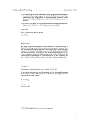 Landtag von Baden-Württemberg Drucksache 16 / 4525 21. Wie beurteilt sie die bisher beabsichtigten Inhalte des Pflegepersonal-Stärkungs- Gesetzes der Bundesregierung, mit welchem etliche Teile aus den Handlungs- empfehlungen der Pflegeenquete zur Personalsituation umgesetzt werden könnten und welche wichtigen Aspekte sind aus ihrer Sicht darin noch zu ver- bessern? 22. Wie weit ist der Stand des vom Sozialministerium angekündigten Modellvor- habens nach § 63 Absatz 3 c SGB V und was sind seine Inhalte? 23. 07. 2018 Stoch, Gall, Hinderer, Kenner, Wölfle und Fraktion Begründung Mit ihrem Abschlussbericht hat die Enquetekommission „Zukunft der Pflege in Baden-Württemberg zukunftsorientiert und generationengerecht gestalten“ über 600 Handlungsempfehlungen abgegeben. Diese wurden durch die Landesregie- rung in der Drucksache 16/881 inhaltlich bewertet. Mit den Drucksachen 16/2000 und der Tischvorlage in Drucksache 16/2065 hat die Landesregierung erste Be- richte zur geplanten Umsetzung abgegeben. Ziel dieser Großen Anfrage ist es, die Umsetzung der Empfehlungen der Enquetekommission aus den Abschnitten 3.1 und 3.2 in den Punkten zu klären, in denen noch offene Fragen vorhanden sind. Antwort*) Schreiben des Staatsministeriums vom 9. Oktober 2018 Nr. III: In der Anlage übersende ich unter Bezugnahme auf § 63 der Geschäftsordnung des Landtags von Baden-Württemberg die von der Landesregierung beschlossene Antwort auf die Große Anfrage. In Vertretung Schopper Staatssekretärin *) Der Überschreitung der Sechs-Wochen-Frist wurde zugestimmt. 3