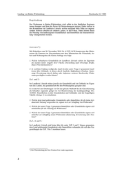 Landtag von Baden-Württemberg Drucksache 16 / 5003 Begründung Der Wohnraum in Baden-Württemberg wird selbst in den ländlichen Regionen immer knapper und lässt die Preise für Mietwohnungen steigen. Dabei rücken in den Kommunen im Landkreis Lörrach, welche aufgrund ihrer Nähe zur angren- zenden Schweiz ohnehin als attraktiv gelten, in den Fokus. Dabei könnte durch die Nutzung von landeseigenen Grundstücken und Immobilien die Innenentwick- lung vorangetrieben werden. Antwort*) Mit Schreiben vom 30. November 2018 Nr. 4-3322.14/28 beantwortet das Minis- terium für Finanzen im Einvernehmen mit dem Ministerium für Wirtschaft, Ar- beit und Wohnungsbau die Kleine Anfrage wie folgt: 1. Welche bebaubaren Grundstücke im Landkreis Lörrach stehen im Eigentum des Landes (unter Angabe ihrer Fläche; Darstellung nach Ortschaft, Straße, Haus-/Flurstücknummer)? 2. In welchem Umfang verfügt das Land (in dem unter Frage 1 genannten Land- kreis) über Gebäude, in denen durch bauliche Maßnahmen (Neubau, Sanie- rung, Erweiterung durch Anbau oder Aufsetzen weiterer Stockwerke) Wohn- raum geschaffen werden könnte? Zu 1. und 2.: Im Landkreis Lörrach stehen jeweils ein Grundstück und ein Gebäude im Eigen- tum des Landes, die grundsätzlich für den Wohnungsbau geeignet sind. Es wurde bei den Erhebungen vor Ort der gleiche Maßstab für die Klassifizierung als bebaubar zugrunde gelegt wie bei Beantwortung der Landtagsanfrage Drs. 16/4061. Einzelheiten zu den Grundstücken und Gebäuden sind der beigefügten Tabelle (Anlage 1) zu entnehmen. 3. Welche dem Land gehörenden Grundstücke oder Immobilien, für die keine fort- dauernde Nutzung vorgesehen ist, eignen sich zur Schaffung von Wohnraum? 4. Welche der unter Frage 3 genannten Immobilien oder Grundstücke eignen sich unmittelbar für die Nutzung als Wohnraum? 5. Welche der unter Frage 3 genannten Immobilien oder Grundstücke eignen sich mittelbar zur Schaffung neuen Wohnraums (Sanierung, Erweiterung oder Neu- bau)? Zu 3., 4. und 5.: Im Landkreis Lörrach sind keine über die unter Ziff. 1 und 2 hinaus genannten, dem Land gehörenden Grundstücke oder Immobilien vorhanden, die sich den Fra- gestellungen der Ziff. 3 bis 5 zuordnen lassen. *) Der Überschreitung der Drei-Wochen-Frist wurde zugestimmt. 2
