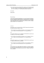 Landtag von Baden-Württemberg Drucksache 16 / 7186 9. Für welche Zwecke und in welcher Höhe wurden bis zum 30. September 2019 bzw. zum 31. Oktober 2019 Entnahmen aus der Rücklage im Sinne des § 1 Ab- satz 3 der Verordnung zu § 18 Landeshaushaltsordnung vorgenommen? 30. 10. 2019 Hofelich SPD Begründung Gegen Ende des laufenden Haushaltsjahres ist es sinnvoll, anhand der Informatio- nen zum tatsächlichen Haushaltsvollzug die Angemessenheit der veranschlagten Summen zu überprüfen. Falls die Zahlen zum 31. Oktober 2019 bereits vorliegen, ist die Angabe dieser Werte erwünscht. Falls die Zahlen noch nicht vorliegen, genügen Angaben zum 30. September 2019. Antwort Mit Schreiben vom 26. November 2019 Nr. 2-0430/7 beantwortet das Ministerium für Finanzen die Kleine Anfrage wie folgt: 1. Wie hoch fallen die tatsächlichen Einnahmen zum 30. September 2019 bzw. zum 31. Oktober 2019 beim Haushaltstitel 112 01 in Kapitel 0608 aus? Zu 1.: Im Jahr 2019 wurden bis zum 30. September 26.395.108,96 Euro und bis zum 31. Oktober 28.112.433,34 Euro vereinnahmt. 2. Wie hoch fallen die tatsächlichen Einnahmen zum 30. September 2019 bzw. zum 31. Oktober 2019 beim Haushaltstitel 119 21 in Kapitel 0608 aus? Zu 2.: Im Jahr 2019 wurden bis zum 30. September 72.882.918,82 Euro und bis zum 31. Oktober 82.404.234,01 Euro vereinnahmt. 3. Wie hoch fallen die tatsächlichen Einnahmen zum 30. September 2019 bzw. zum 31. Oktober 2019 beim Haushaltstitel 216 01 in Kapitel 0608 aus? Zu 3.: Da der genannte Titel in Kapitel 0608 nicht vorhanden ist, wird davon ausgegan- gen, dass sich die Frage auf den Titel 261 01 bezieht. Im Jahr 2019 wurden bis zum 30. September 43.254.458,08 Euro und bis zum 31. Oktober 54.825.242,11 Euro vereinnahmt. 2