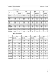 Landtag von Baden-Württemberg Drucksache 16 / 9196 Hohenlohekreis: 2017 2018 2019 2020 Monat Gesamt- Gesamt- Gesamt- Gesamt- Belegung Belegung Belegung Belegung kapazität kapazität kapazität kapazität Januar – – 438 232 169 125 164 109 Februar – – 438 198 169 133 164 112 März 1.344 719 430 181 169 132 162 111 April 1.331 650 405 142 164 137 186 122 Mai 1.291 597 362 129 169 133 186 124 Juni 1.081 525 354 118 164 132 186 121 Juli 1.061 447 187 112 164 125 186 119 August 1.061 427 187 112 164 128 186 112 September 739 364 187 111 164 127 184 111 Oktober 729 336 187 110 164 122 184 119 November 590 313 174 121 164 121 – – Dezember 450 271 174 120 164 119 – – Kreis Schwäbisch Hall: 2017 2018 2019 2020 Monat Gesamt- Belegung Gesamt- Belegung Gesamt- Belegung Gesamt- Belegung kapazität kapazität kapazität kapazität Januar – – 1.390 856 915 467 786 408 Februar – – 1.380 812 889 458 721 399 März 2.027 1.495 1.379 760 886 456 721 385 April 1.678 1.451 1.335 638 886 441 721 379 Mai 1.649 1.384 1.149 625 886 448 692 402 Juni 1.804 1.346 1.123 582 884 454 692 399 Juli 1.721 1.298 1.123 545 815 433 692 377 August 1.715 1.234 1.139 525 804 429 692 380 September 1.683 1.168 1.107 521 804 406 689 366 Oktober 1.544 1.096 853 520 807 413 689 357 November 1.451 994 961 524 786 422 – – Dezember 1.407 901 888 467 786 419 – – 3