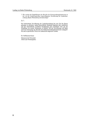 Landtag von Baden-Württemberg Drucksache 16 / 5684 7. Wie wurden die Empfehlungen des Berichts der Kostensenkungskommission in der von der Landesregierung vorgeschlagenen Novellierung der Landesbau- ordnung Baden-Württemberg berücksichtigt? Zu 7.: Die beabsichtigte Novellierung der Landesbauordnung hat zum Ziel das Bauen günstiger zu gestalten, indem baurechtliche Standards abgebaut oder modifiziert und das baurechtliche Verfahren beschleunigt und vereinfacht wird, um die Schaffung von neuem Wohnraum zu fördern. Mit der Novellierung soll daher auch die Zielsetzung des Berichts der Baukostensenkungskommission aufgegrif- fen und in spezifischer Weise im Landesrecht umgesetzt werden. Dr. Hoffmeister-Kraut Ministerin für Wirtschaft, Arbeit und Wohnungsbau 8