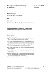 Landtag von Baden-Württemberg Drucksache 16 / 4152 8. Welche möglichen Alternativen der Sanierung wurden durch die Landesregie- rung für den Mannheimer Rheindamm geprüft? 23. 05. 2018 Dr. Weirauch SPD Begründung In Mannheim muss der Rheinhochwasserdamm zwischen dem Großkraftwerk in Neckarau und der Weinbietstraße im Lindenhof saniert werden. Der derzeitige Plan für die Umsetzung der Sanierung sieht eine baumfreie Zone auf beiden Sei- ten des Damms mit einer Breite von insgesamt 30 bis 50 Metern vor, für die eine Vielzahl von teilweise sehr alten Bäumen gefällt werden müsste. Die Kleine An- frage hat zum Ziel herauszufinden, welche Alternativen die Landesregierung zu den bestehenden Plänen geprüft hat und wie die Landesregierung vorhat, die An- zahl der zu fällenden Bäume zumindest zu begrenzen. Antwort Mit Schreiben vom 20. Juni 2018 Nr. 5-0141.5/626/ beantwortet das Ministerium für Umwelt, Klima und Energiewirtschaft im Einvernehmen mit dem Ministerium für Ländlichen Raum und Verbraucherschutz die Kleine Anfrage wie folgt: 1. Wie beurteilt sie die geplante Fällung der Bäume entlang des Hochwasser- damms zwischen Großkraftwerk und Mannheim-Lindenhof? Die Ertüchtigung des Rheinhochwasserdamms (RHWD) XXXIX in Mannheim hat für das Land Baden-Württemberg eine sehr hohe Priorität. Grundlage für die Sanierungsplanungen sind die einschlägigen technischen Regelwerke für Hoch- wasserschutzdämme, die DIN 19712 „Hochwasserschutzanlagen an Fließgewäs- sern“ und das Merkblatt DWA-M 507-1 „Deiche an Fließgewässern“. In die Neu- auflagen der beiden Veröffentlichungen (2011 und 2013) sind die Erkenntnisse aus den katastrophalen Hochwässern an Oder und Elbe eingeflossen. Dort hat sich während der Ereignisse gezeigt, dass Bäume auf und nahe von Dämmen zu ge- fährlich instabilen Verhältnissen führen und ein Versagen des Dammes zur Folge haben können. Aufbauend auf der Vorplanung für die Sanierung des Rheinhochwasserdammes (RHWD) XXXIX in Mannheim, die im April 2018 abgeschlossen werden konnte, wird derzeit die Entwurfsplanung gefertigt. Dabei hat sich gezeigt, dass im Rah- men der dringend anstehenden Dammertüchtigung auf Grundlage der vorliegen- den einschlägigen technischen Regelwerke vorhandene Bäume auf und neben dem Hochwasserschutzdamm beseitigt werden müssen. 2. Für wie viele Bäume ist im Rahmen der durch das Regierungspräsidium Karls- ruhe geplanten Sanierung des Hochwasserdamms zwischen dem Mannheimer Stadtteil Lindenhof und dem Großkraftwerk Mannheim die Fällung vorgesehen? Auf und neben dem Rheinhochwasserdamm (RHWD) XXXIX in Mannheim ste- hen viele Bäume, die bei der Sanierung des Hochwasserdamms gefällt werden müssen. Es handelt sich um einen Eingriff auf einer Fläche von insgesamt etwa 7 ha. Davon werden nach der Baumaßnahme auf ca. 2 ha wieder Bäume gepflanzt und als Waldmantel entwickelt. Zum jetzigen Planungsstand wurde die genaue 2