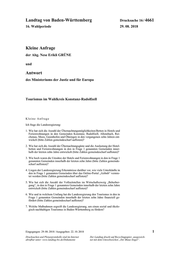 Landtag von Baden-Württemberg Drucksache 16 / 4661 Individuelle Beteiligungsformen der einzelnen Tourismuseinrichtungen bestehen unter anderem in der Energieberatung, den Digitallotsen oder auch der nachfrage- orientierten Zertifizierung mit dem Siegel „Tourismus für Alle“. Einige der Bera- tungsangebote werden durch das Land Baden-Württemberg finanziell unterstützt und in Zusammenarbeit mit dem DEHOGA Baden-Württemberg durchgeführt. Des Weiteren wird auf die Drucksache 16/4581 verwiesen, welche sich umfäng- lich dem Thema Nachhaltiger Tourismus in Baden-Württemberg widmet. 8. Wie werden diese Maßnahmen vor Ort in den in Frage 1 genannten Gemein- den umgesetzt? Zu 8.: Aus touristischer Sicht sind der „REGIO Konstanz-Bodensee-Hegau e. V.“ sowie die „Marketing und Tourismus Konstanz GmbH“ als zuständige Destinations- managementorganisationen (DMOs) für die hier abgefragten Gemeinden die re- gionalen Ansprechpartner. An der landesweiten Zertifizierungsinitiative „Nach- haltiges Reiseziel“ beteiligen sich allerdings beide DMOs nicht. In den Gemeinden Moos und Öhningen wurde die Neugestaltung des Strandbads jeweils durch Mittel aus dem Tourismusinfrastrukturprogramm (TIP) gefördert. Beide Strandbäder halten nun barrierefreie WC-Anlagen sowie Waschmöglich- keiten oder Duschen für Menschen mit eingeschränkter Mobilität vor. Über einzelbetriebliche Aktivitäten und Investitionen liegen der Landesregierung keine Informationen vor. Wolf Minister der Justiz und für Europa 5