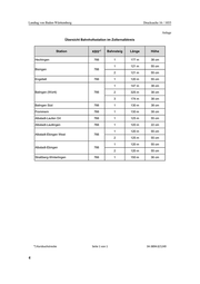 Landtag von Baden-Württemberg Drucksache 16 / 1035 Anlage Übersicht Bahnhofsstation im Zollernalbkreis ) Station KBS* Bahnsteig Länge Höhe Hechingen 766 1 177 m 38 cm 1 121 m 55 cm Bisingen 766 2 121 m 55 cm Engstlatt 766 1 120 m 55 cm 1 147 m 38 cm Balingen (Württ) 766 2 325 m 38 cm 3 174 m 38 cm Balingen Süd 766 1 130 m 38 cm Frommern 766 1 130 m 38 cm Albstadt-Laufen Ort 766 1 125 m 55 cm Albstadt-Lautlingen 766 1 120 m 22 cm 1 120 m 55 cm Albstadt-Ebingen West 766 2 125 m 55 cm 1 120 m 55 cm Albstadt-Ebingen 766 2 120 m 55 cm Straßberg-Winterlingen 766 1 150 m 36 cm *) Kursbuchstrecke Seite 1 von 1 34-3894.0/1249 4