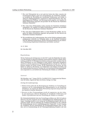 Landtag von Baden-Württemberg Drucksache 16 / 5405 7. Wie viele Widersprüche hat es im Laufe der letzten drei Jahre vonseiten der Erziehungsberechtigten gegen die Entscheidungen der Staatlichen Schuläm- ter bezüglich der Beschulung der betreffenden Schülerinnen und Schüler in inklusiven Bildungsangeboten, kooperativen Organisationsformen oder Son- derpädagogischen Bildungs- und Beratungszentren gegeben, mit Angaben für Baden-Württemberg insgesamt und gesondert für den Bereich des Staatlichen Schulamts Mannheim? 8. Wie vielen dieser Widersprüche wurde vonseiten der Staatlichen Schulämter stattgegeben, mit Angaben für Baden-Württemberg insgesamt und gesondert für den Bereich des Staatlichen Schulamts Mannheim? 9. Wie viele dieser Widersprüche haben zu einem Rechtsstreit geführt, mit An- gaben für Baden-Württemberg insgesamt und gesondert für den Bereich des Staatlichen Schulamts Mannheim? 10. Wie gewährleistet die Landesregierung, dass an den Schulen genügend sonder- pädagogische Lehrkräfte zur Verfügung stehen, an die Staatliche Schulämter nach der Bildungswegekonferenz und der Elternentscheidung für eine inklusi- ve Beschulung entsprechend Schülerinnen und Schüler zuweisen? 14. 12. 2018 Dr. Fulst-Blei SPD Begründung Mit der Änderung des Schulgesetzes im Jahr 2015 wurde die Möglichkeit der inklu- siven Beschulung an allgemein bildenden und beruflichen Schulen in Baden-Würt- temberg gemäß der UN-Behindertenrechtskonvention gesetzlich verankert. Bis die ideale Ausstattung von zwei Pädagogen in jeder inklusiv arbeitenden Schulklasse erreicht ist, müssen angemessene Übergangsmaßnahmen in Kraft sein. Mit dieser Kleinen Anfrage soll eruiert werden, ob die Organisation des Prozesses, der den Bedarf an inklusiver Beschulung von Schülerinnen und Schülern feststellen und die entsprechenden Ressourcen verteilen soll, mit ausreichend Sicherungsmaßnah- men ausgestattet ist, um letztlich eine Überlastung der Schulen zu verhindern. Antwort Mit Schreiben vom 7. Januar 2019 Nr. 36-6500.39/181/1 beantwortet das Ministe- rium für Kultus, Jugend und Sport die Kleine Anfrage wie folgt: Ich frage die Landesregierung: 1. Welche Fristen gelten für die Beantragung des Verfahrens zur Feststellung des Anspruchs auf ein sonderpädagogisches Bildungsangebot an den Staatlichen Schulämtern, mit Angaben für Baden-Württemberg insgesamt und gesondert für das Staatliche Schulamt Mannheim? 2. Bewertet sie diese Fristenregelungen jeweils als angemessen, um eine zeitna- he und angemessene inklusive Beschulung der betreffenden Schülerinnen und Schüler zu gewährleisten und eine Überlastung der Schulen zu vermeiden? Die Schulaufsichtsbehörde leitet das Feststellungsverfahren ein, falls ihr konkrete Hinweise auf einen Anspruch auf ein sonderpädagogisches Bildungsangebot vor- liegen. Grundlage hierfür ist ein Antrag der Erziehungsberechtigten oder der all- gemeinen Schule. Mit der Einleitung des Verfahrens beauftragt sie eine Lehrkraft für Sonderpädagogik mit der sonderpädagogischen Diagnostik. Je nach Ausgang des Verfahrens und der Entscheidung der Erziehungsberechtigten kann es sein, dass sich im Zusammenhang mit der Schulangebotsplanung komplexe und zum 2