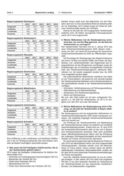 Seite 2 Bayerischer Landtag · 17. Wahlperiode Drucksache 17/6974 Regierungsbezirk Oberbayern Darüber hinaus spielt auch das Abkommen von der Fahr- 2010 2011 2012 2013 2014 bahn nach wie vor eine wesentliche Rolle bei Verkehrsunfäl- Insgesamt 216 237 203 206 214 len mit Todesfolge. 2014 endete knapp ein Drittel der tödli- Autobahn 24 30 17 34 14 chen Verkehrsunfälle abseits der Fahrbahn. Landstraße 136 157 123 123 141 Ebenso ist die Zahl der nicht angegurteten Verkehrsopfer Innerorts 56 50 63 49 59 weiterhin hoch. 65 tödlich verunglückte Fahrzeuginsassen waren 2014 nicht angeschnallt. Regierungsbezirk Niederbayern 4. Welche Maßnahmen hat die Staatsregierung veran- 2010 2011 2012 2013 2014 lasst bzw. neu auf den Weg gebracht, um die Zahl der Insgesamt 94 107 102 99 94 Verkehrstoten zu verringern? Autobahn 7 8 10 10 11 Herr Staatsminister Herrmann hat am 4. Januar 2013 das Landstraße 73 84 78 70 67 neue Verkehrssicherheitsprogramm 2020 „Bayern mobil – Innerorts 14 15 14 19 16 sicher ans Ziel“ und damit die Ausrichtung der bayerischen Verkehrssicherheitsarbeit bis 2020 der Öffentlichkeit vorge- Regierungsbezirk Oberpfalz stellt. 2010 2011 2012 2013 2014 Auf Grundlage der Überlegungen des Staatsministeriums Insgesamt 75 91 69 79 61 des Innern, für Bau und Verkehr (StMI), der Polizei, der Stra- Autobahn 13 7 7 9 7 ßenbau- und -verkehrsbehörden, den Ergebnissen des Di- Landstraße 45 63 49 52 44 alogverfahrens mit den Bürgerinnen und Bürgern sowie der Innerorts 17 21 13 18 10 Empfehlungen der im Anschluss durchgeführten Fachforen sieht das Verkehrssicherheitsprogramm zahlreiche Maß- Regierungsbezirk Oberfranken nahmen vor, die bereits umgesetzt wurden bzw. bis 2020 2010 2011 2012 2013 2014 noch umgesetzt werden sollen. Insgesamt 71 69 60 65 34 Die unterschiedlichen Maßnahmen orientieren sich dabei Autobahn 7 11 12 12 5 an vier Themenfeldern, die jeweils für sich zentrale Aspekte Landstraße 39 50 32 37 20 der Verkehrssicherheit abdecken und im Zusammenspiel ei- Innerorts 25 8 16 16 9 nen ganzheitlichen Ansatz in der Verkehrssicherheitsarbeit verfolgen: Regierungsbezirk Mittelfranken – Information, Verkehrssteuerung und Fahrzeugausstattung, 2010 2011 2012 2013 2014 – Wahrnehmung und Wahrnehmbarkeit, Insgesamt 88 78 73 77 66 – Infrastruktur und Verkehrsraumgestaltung, Autobahn 15 6 16 12 18 – Recht und Überwachung. Landstraße 52 53 41 44 24 Bis zum Jahr 2020 wollen wir mit dem vorliegenden Pro- gramm u. a. die Zahl der Verkehrstoten um 30 % im Ver- Innerorts 21 19 16 21 24 gleich zum Jahr 2011 auf unter 550 senken. Regierungsbezirk Unterfranken 5. Welche Maßnahmen der Staatsregierung sind in Pla- 2010 2011 2012 2013 2014 nung, um die Zahl der Verkehrstoten in Bayern effek- Insgesamt 70 81 66 72 59 tiv zu senken? Autobahn 15 9 6 15 8 Die Staatsregierung wird die angedachten Maßnahmen im Landstraße 37 58 50 40 38 Verkehrssicherheitsprogramm 2020 weiter konsequent um- Innerorts 18 14 10 17 13 setzen. Die langfristig angelegte Verkehrssicherheitsarbeit zahlt sich bereits aus. Regierungsbezirk Schwaben Zur Erhöhung der Verkehrssicherheit und Bekämpfung 2010 2011 2012 2013 2014 der Hauptunfallursachen setzen wir weiterhin auf verstärkte Insgesamt 83 117 89 82 91 Geschwindigkeitskontrollen. Zuletzt fand am 16. April 2015 Autobahn 12 8 2 13 9 der bundesweite Blitzmarathon statt, an den sich in Bayern Landstraße 53 81 62 54 59 eine Schwerpunktwoche anschloss. Aber auch außerhalb Innerorts 18 28 25 15 23 dieser öffentlichkeitswirksamen Aktion wird die Einhaltung der zulässigen Höchstgeschwindigkeit auf den bayerischen Eine Auflistung zu den Landkreisen und kreisfreien Städten Straßen von Polizei und Kommunen überwacht. war in der zur Verfügung stehenden Zeit nicht leistbar, kann Ein besonderes Augenmerk legt die Bayerische Polizei im aber bei Bedarf nachträglich übermittelt werden. Jahr 2015 auf alkoholisierte Fahrer und nicht angeschnallte Fahrzeuginsassen. Daneben werden auch die Motorrad- 3. Was waren die fünf häufigsten Unfallursachen, die zu fahrer im Fokus stehen. Hierzu werden neben der jährlich den Verkehrstoten geführt haben? stattfindenden Kulmbacher Motorradsternfahrt (zuletzt am 2014 waren die häufigsten Unfallursachen für tödliche Ver- 26. April 2015) auch dezentrale Präventionsveranstaltungen kehrsunfälle (VU): der Polizei durchgeführt. – Überhöhte und nichtangepasste Geschwindigkeit (182 VU) Auch die „Gebaute Verkehrssicherheit“ ist uns ein wichti- – Missachten der Vorfahrt (80 VU) ges Anliegen. In den Jahren 2013 bis 2020 sind insgesamt – Fehler beim Überholen (58 VU) 440 Mio. € aus dem laufenden Haushalt zur Verbesserung – Alkoholeinfluss (53 VU) der Verkehrssicherheit auf den bayerischen Autobahnen, – Fehler beim Überschreiten der Fahrbahn (36 VU) Bundes- und Staatsstraßen vorgesehen.