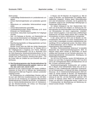 Drucksache 17/6974 Bayerischer Landtag · 17. Wahlperiode Seite 3 Damit werden In Bayern sind 59 Strecken mit insgesamt ca. 550 km – unfallauffällige Straßenbereiche im Landstraßennetz um- Länge auf Bundes- und Staatsstraßen als auffällige Motor- gebaut, radstrecken eingestuft. Entlang dieser Motorradstrecken – sichere Überholmöglichkeiten auf Landstraßen geschaf- sind viele Schutzplanken vorhanden, die für gestürzte Mo- fen, torradfahrer aufgrund der scharfkantigen Befestigungen zu – Seitenräume an Landstraßen fehlerverzeihend ausge- Verletzungen führen können. staltet, Vor diesem Hintergrund hat Herr Staatsminister Herr- – sichere Motorradstrecken geschaffen, mann am 02.02.2010 eine Initiative zur Senkung des Ver- – Landstraßenkreuzungen besser erkennbar (z. B. durch letzungsrisikos bei Motorradunfällen durch die Nachrüstung Einbauten von Fahrbahnteilern), von Schutzplanken mit einem sogenannten „Unterfahr- – barrierefreie, beleuchtete Querungshilfen für Fußgänger schutz“ bekannt gegeben. In den besonders unfallträchtigen errichtet, Außenkurven mit einem Radius kleiner 300 m werden alle – Geh- und Radwege an Bundes- und Staatsstraßen ge- Schutzplanken mit einem Unterfahrschutz nachgerüstet. baut und die Erkennbarkeit von Radwegen erhöht, In den Jahren 2010 bis 2014 sind im Bereich von Mo- – Parkmöglichkeiten für Lkws an Autobahnen ausgebaut torradstrecken 600 Kurven mit einem Kostenaufwand von und rund 3,4 Mio. € nachträglich mit einem Unterfahrschutz (Ge- – Beschleunigungsstreifen an Steigungsstrecken auf Auto- samtlänge: 80 km) nachgerüstet worden. Die Aktion „Siche- bahnen verlängert. re Motorradstrecken“ wird im Rahmen des Verkehrssicher- Darüber hinaus plant das StMI den fünften Bayerischen heitsprogramms 2020 weitergeführt. Landestag der Verkehrssicherheit am 10. Oktober 2015 in Die Aktion „Fehlerverzeihender Seitenraum“ ist ebenfalls der Fußgängerzone in Augsburg zum Thema „Wahrneh- Bestandteil des Verkehrssicherheitsprogramms 2020. Im mung und Wahrnehmbarkeit“ und am 9. November 2015 Rahmen dieser Aktion werden an Abschnitten, an denen die vierte Bayerische Verkehrssicherheitskonferenz im Uni- auffällig viele Fahrzeuge von der Fahrbahn abkommen, Ver- versitätsklinikum Regensburg. Dort wird es um die richtigen besserungsmaßnahmen (Schutzplanken, Beseitigung von Schritte nach einem schweren Verkehrsunfall gehen – von Hindernissen) durchgeführt. der Ersten Hilfe am Unfallort bis zum Erreichen des Kran- Von 2013 bis 2014 konnten bereits 229 Maßnahmen mit kenhauses. Kosten von rund 2 Mio. € umgesetzt werden. (2011 bis 2012 sind in der vorhergehenden Aktion 240 Maßnahmen mit 3,9 6. Sind Sonderprogramme oder Sondermaßnahmen für Mio. € Kosten verwirklicht worden.) spezielle Unfallschwerpunkte geplant, wenn ja, wel- Verkehrszeichengeregelte Knotenpunkte auf Landstra- che, bzw. wenn nein, warum nicht? ßen in Bayern ohne Fahrbahnteiler haben eine um bis zu Basierend auf den Untersuchungen der lokalen Unfallkom- doppelt so hohe Unfallkostenrate gegenüber Knotenpunk- missionen ist Ende 2013 im Rahmen des Verkehrssicher- ten mit Fahrbahnteilern. Im Rahmen der Aktion „Erkennbare heitsprogramms 2020 das Programm „Sichere Landstraße“ Kreuzung“, die im Verkehrssicherheitsprogramm 2020 ent- aufgelegt worden. halten ist, werden deshalb an Bundes- und Staatsstraßen Zur Verbesserung von unfallträchtigen Strecken sieht es noch fehlende Verkehrsinseln nachgerüstet und die Weg- bis zum Jahr 2020 eine Investitionssumme von 330 Millio- weisung für den Kfz- und den Radverkehr optimiert. 2014 nen Euro für die Umsetzung von insgesamt 286 baulichen konnten im Rahmen dieser Aktion 30 Verkehrsinseln mit Abhilfemaßnahmen im Bereich der Bundes- und Staatsstra- Kosten von 800.000 € nachgerüstet werden, zudem ist an ßen vor. Solche Abhilfemaßnahmen sind z. B. Verbesserun- 11 Knotenpunkten die Beschilderung und Markierung ver- gen des Streckenverlaufes, der Umbau von Kreuzungen bessert worden (Kosten: 119.000 €). oder Bau von Lichtsignalanlagen.