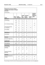 Bayerischer Landtag 17. Wahlperiode 03.10.2014 17/2938 Schriftliche Anfrage Anzahl der Schüler der Abgeordneten Margit Wild SPD mit sehr hohem vom 15.07.2014 Jahrgangsstufe(n) Klassen- Schuljahr sonder- Schulen stärke pädagogi- Situation der Tandem-Klassen schem Förderbe- Zur Umsetzung der UN-Konvention über die Rechte der darf Menschen mit Behinderungen tragen auch die sogenannten Oberbayern Tandem-Klassen einen wichtigen Teil bei. 2011/2012 1 GS Freilassing 22 7 1 GS St. Korbinian 21 7 Daher frage ich die Staatsregierung: 1 Heinrich-Braun-GS, 21 7 Trostberg 1. Wie hat sich die Klassenstärke der jeweiligen Tandem- 2012/2013 1 Heinrich-Braun-GS, 21 8 Trostberg Klassen seit Bestehen entwickelt? 2 GS Freilassing 20 8 2. Wie hoch ist jeweils der Anteil der Kinder mit hohem son- 2 GS St. Korbinian, Freising 21 7 derpädagogischem Förderbedarf? 2 Heinrich-Braun-GS, 21 7 Trostberg 2 GS Schrobenhausener 20 7 3. Wie setzt sich in den jeweiligen Klassen das pädagogi- Str., München sche Personal zusammen? 2013/2014 1 GS Freilassing 18 8 1 GS St. Korbinian, Freising 22 7 2 Heinrich-Braun-GS, 25 8 Trostberg 3 GS Freilassing 20 7 3 GS St. Korbinian, Freising 22 7 3 Heinrich-Braun-GS, 20 7 Trostberg 3 GS Schrobenhausener 19 7 Str., München 2014/2015 2 GS Freilassing 19 7 2 GS St. Korbinian, Freising 22 7 3 Heinrich-Braun-GS, 25 8 Antwort Trostberg 4 GS Freilassing 20 9 des Staatsministeriums für Bildung und Kultus, Wissen- 4 GS St. Korbinian, Freising 22 7 schaft und Kunst vom 20.08.2014 4 Heinrich-Braun-GS, 20 7 Trostberg 4 GS Schrobenhausener 19 7 1. Wie hat sich die Klassenstärke der jeweiligen Tan- Str., München dem-Klassen seit Bestehen entwickelt? Niederbayern 2. Wie hoch ist jeweils der Anteil der Kinder mit hohem 2011/2012 5 MS Vilshofen 10 8 sonderpädagogischem Förderbedarf? 2012/2013 6 MS Vilshofen 14 7 Für Schülerinnen und Schüler mit sehr hohem sonderpäda- 2013/2014 6 MS Vilshofen 14 7 gogischem Förderbedarf können in Schulen mit dem Schul- 7 MS Vilshofen 23 8 profil „Inklusion“ seit dem Schuljahr 2011/2012 Klassen mit 2014/2015 6 MS Vilshofen 12 7 festem Lehrertandem gebildet werden, in denen sie im ge- meinsamen Unterricht durch eine Lehrkraft der allgemeinen 7 MS Vilshofen 18 7 Schule und einer Lehrkraft für Sonderpädagogik bzw. einen Oberpfalz Heilpädagogischen Förderlehrer/eine Heilpädagogische 2011/2012 1 GS Regensburg 23 8 Förderlehrerin unterrichtet werden (Art. 30 b Abs. 5 Satz 1 1 GS Mitterteich 21 8 BayEUG). 2012/2013 2 GS Regensburg 23 11 2 GS Mitterteich 20 7 Die Entwicklung der Klassenstärken und den Anteil der 2013/2014 3 GS Regensburg 22 9 Schüler mit sehr hohem sonderpädagogischem Förderbe- 3 GS Mitterteich 20 7 darf in den Tandem-Klassen seit dem Schuljahr 2011/2012 2014/2015 4 GS Regensburg 20 8 zeigt die folgende Tabelle: 4 GS Mitterteich 20 7 Drucksachen, Plenarprotokolle sowie die Tagesordnungen der Vollversammlung und der Ausschüsse sind im Internet unter www.bayern.landtag.de –Dokumente abrufbar. Die aktuelle Sitzungsübersicht steht unter www.bayern.landtag.de – Aktuelles/Sitzungen/Tagesübersicht zur Verfügung.