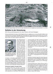 - 22 - Schwarzwild erfolgreich bejagen, dazu müssen die Jäger untereinander und mit den Jagdgenossen zusammenarbeiten. Foto: Kellerer Defizite in der Umsetzung BBV-Schwarzwild-Symposium mit vielen Themen und neuen Strategien Schwarzwild breitet sich nahezu in allen Regionen Bayerns ungebremst aus, verursacht große Schäden in der Landwirtschaft und stellt als Überträger der Schweinepest eine Bedrohung der Hausschweine dar. Der Baye- rische Bauernverband (BBV) und die Arbeitsgemeinschaft der Jagdgenossenschaften und Eigenjagdbesitzer in Bayern haben sich dieser Probleme angenommen. Der zahlreiche Besuch nung herzustellen. Der BBV ist hierbei als Vertreter durch Jagdvorsteher, der Grundeigentümer und somit als Jagdrechtsin- Landwirte und Jäger haber in besonderer Weise betroffen. „Jagdgenos- mit nahezu 200 Teil- senschaften und Jäger müssen gemeinsam praxis- nehmern am BBV- taugliche Lösungen zustande bringen. Die Bauern Schwarzwildsynnpo- haben größtes Interesse an einer unverzüglichen sium in Herrsching Entschärfung der Schwarzwildproblennatik", sagte machte deutlich, Sonnleitner. wie ernsthaft dieses Thema die Bauern Das Schwarzwildsymposium sei auf Wunsch der derzeit bewegt. Zur Bauern speziell für die Jagdgenossenschaften orga- aktuellen Entwicklung nisiert worden. Dabei gehe es um eine fundierte berichtete BBV-Präsi- Fachinformation, um praktisches „Handwerkszeug" Gerd Sonnleitner: „Die Bauern für die Mitglieder. Aber auch der Erfahrungsaustausch haben größtes Interesse an einer dent Gerd Sonnleit- unverzüglichen Entschärfung der ner, dass seit 1980 die über örtliche Lösungsmöglichkeiten fand größtes Schwarzwildproblematik." Schwarzwildstrecke Interesse. landesweit um das Sonnleitner bemerkte angesichts bereits bekannter 21-Fache, in Schwaben sogar um das 112-Fache und anerkannter Verfahrensgänge bei der praktischen angestiegen sei. Im Jagdjahr 2008/2009 wurde mit Jagdausübung, dass es sich hierbei weniger um ein über 62 000 erlegten Tieren eine neue Rekordzahl Erkenntnis-, sondern vielmehr um ein Umsetzungs- erreicht. Dieses Ergebnis bestätigt zwar die verstärk- problem handele! ten Anstrengungen der Jäger. Sie signalisiere jedoch den hohen Grundbestand des Schwarzwildes und die Landwirtschaftsminister Helmut Brunner fand in nur schwer einzuschätzende Populationsdynamik. seinem Referat anerkennende Worte für den BBV und die Arbeitsgemeinschaft der Jagdgenossenschaften Gemeinsam taugliche Lösungen finden und Eigenjagdbesitzer. Er verspreche sich davon Da anhaltend über hohe und weiter zunehmende für seine Arbeit wichtige Beiträge zur nachhaltigen Wildschäden in der Landwirtschaft geklagt wird, Lösung des Schwarzwildproblems, aber auch neue heißt das, dass die bisherigen Bejagungsmethoden Impulse für die jagdpolitische Weichenstellung in nicht ausreichen, um auf diesem Feld wieder Ord- unserem Lande, so der Minister.