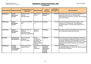 Bayer. Staatsministerium für Stand: 07.03.2007 Wissenschaft, Forschung und Kunst Weitere abzulehnende Anträge ohne Sperrefreigabe 2007 (sortiert nach Regierungsbezirken und Landkreisen) Planung/VE 2007 Regierungsbezirk Landkreis Maßnahmeträger Ort der Maßnahme Maßnahmegruppe Art der Maßnahme Zuschuss 2007 zu Lasten 2008 Oberfranken Bamberg, kreisfrei Crossartconcept Bamberg Theater Bamberger Sommeroper 2007 25.000,00 € e. V. Oberfranken Bayreuth Fränkischer Hollfeld Theater Beschaffung eines fahrbaren Theaterwagens mit integrierter 20.000,00 € Theatersommer e. Bühne V. Oberfranken Bayreuth Gemeinde Hummeltal Museen Verlegung des Museums "Hummelstube" 60.000,00 € Hummeltal Oberfranken Summe 105.000,00 € - € Mittelfranken Ansbach Kulturforum Rothenburg o.d.T. Theater Toppler-Theaterstück in Rothenburg ob der Tauber 5.000,00 € 5.000,00 € Rothenburg ob der Tauber e.V. Mittelfranken Ansbach, kreisfrei Kindertheater Ansbach Theater Umbau des Kinder- und Jugendtheaters "Kopfüber" 8.000,00 € "Kopfüber" e.V. Mittelfranken Ansbach, kreisfrei Bezirk Ansbach, Heimatpflege Sicherung gefährdeter Tondokumente aus dem Archiv der 5.000,00 € 5.000,00 € Mittelfranken überregional Forschungsstelle für fränkische Volksmusik Mittelfranken Erlangen, kreisfrei Freundeskreis Erlangen Musikpflege Konzert "Französische Nacht" in Erlangen anlässlich des 2.500,00 € Erlanger Altstadt 200. Jahrestages des Friedens von Tilsit e.V. Mittelfranken Nürnberg Institut für Nürnberg (überreg.) Archive Dokumentation und Vermittlung - 40 Jahre Institut für 8.400,00 € moderne Kunst Bibliotheken moderne Kunst 1967 - 2007 e.V. Literatur Mittelfranken Summe 28.900,00 € 10.000,00 € - 97 -