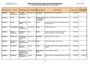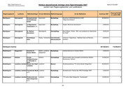Bayer. Staatsministerium für Stand: 07.03.2007 Wissenschaft, Forschung und Kunst Weitere abzulehnende Anträge ohne Sperrefreigabe 2007 (sortiert nach Regierungsbezirken und Landkreisen) Planung/VE 2007 Regierungsbezirk Landkreis Maßnahmeträger Ort der Maßnahme Maßnahmegruppe Art der Maßnahme Zuschuss 2007 zu Lasten 2008 Niederbayern Passau Herr Vincent Passau und Theater Theaterprojekt "Der eingebildete Kranke" 7.000,00 € - € Kraupner verschiedene Orte im Landkreis Passau Niederbayern Passau Landkreis Passau Asbach, Landkreis Museen Ausstellung "Albrecht Dürer - Holzschnitte, Kupferstiche aus 5.000,00 € - € Passau der Graphischen Sammlung Stift Stams" Niederbayern Passau Landkreis Passau Hauzenberg, Zeitgenössische Internationales Granitsymposium im Granitzentrum 5.000,00 € - € Landkreis Passau Kunst Hauzenberg Niederbayern Passau Landkreis Passau Passau, Landkreis Heimatpflege Volksmusik heute - Musiker und Sänger in der Grenzregion 2.500,00 € - € Passauer Land u. a. Niederbayern Passau, kreisfrei Verein für Passau und ver- Heimatpflege Bayerischer Teil der Erforschung des Goldenen Steiges von 7.000,00 € 7.000,00 € Ostbairische schiedene Orte in Passau nach Böhmen (Dokumentation) Heimatforschung Niederbayern e. V. Niederbayern Rottal-Inn Stadt Pfarrkirchen Pfarrkirchen, Zeitgenössische Wechselausstellungen zeitgenössischer Kunst im "Hans- 7.000,00 € - € Landkreis Rottal-Inn Kunst Reiffenstuel-Haus" Niederbayern überregional Kulturbüro Maria verschiedene Orte Sonstige kulturelle "Schweinzeit 2007 - 99 Tage im Zeichen der Sau" 10.000,00 € - € Bruckbauer in Niederbayern Veranstaltungen und Projekte Niederbayern Summe 104.500,00 € 7.000,00 € Oberpfalz Amberg-Sulzbach Stadt Sulzbach- Sulzbach- Theater Knorr-von-Rosenroth-Festspiele 17.000,00 € - € Rosenberg Rosenberg Oberpfalz Amberg-Sulzbach Arbeitsgemeinsch Freihung- Zeitgenössische Künstlersymposien 14.000,00 € - € aft Obere Vils- Freudenberg Kunst Ehenbach - 95 -
