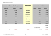 Bayerisches Staatsministerium für Wissenschaft, Forschung und Kunst Starre Quotierung tatsächliche Zahlen Regierungsbezirk (nach Fläche und Bevölkerung*) Kulturfonds 2010 Anteile in % Anteile in € Platzziffer Platzziffer Anteile in % Anteile in € 25,66 1.411.062 1 Oberbayern 5 12,84% 706.080 15,51 852.906 2 Schwaben 7 5,00% 274.900 12,95 712.130 3 Niederbayern 3 14,61% 803.300 12,50 687.384 4 Unterfranken 4 13,63% 749.600 12,05 662.638 5 Oberpfalz 1 22,73% 1.250.019 10,76 591.700 6 Mittelfranken 6 6,56% 360.800 10,57 581.252 7 Oberfranken 2 20,17% 1.109.373 5.254.072 zzgl. "überregional" 245.000 100 5.499.072 SUMMEN 100,00% 5.499.072 * je ohne Städte München und Nürnberg - 10 - Stand: 12.03.2010