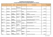 Vorschläge für den Kulturfonds 2010.xls (Liste aller Maßnahmen sortiert nach Regierungsbezirk und Landkreis) Planung/VE 2010 Maßnahmegruppe Regierungsbezirk Landkreis Maßnahmeträger Ort der Maßnahme Art der Maßnahme Zuschuss 2010 zu Lasten 2011 Zeitgenössische Musikbegegnungen Kunst Niederbayern Deggendorf e. V. Hauzenberg Nachwuchswettbewerb "POArt 2010" 3.000,00 € Zeitgenössische Kunst Niederbayern Deggendorf Stadt Plattling Plattling Künstlersymposium "Drache" 4.000,00 € Förderverein Nibelungen-Festspiel Plattling, Nibelungen-Festspiel 2010 anlässlich des 20-jährigen Heimatpflege Niederbayern Deggendorf Plattling e. V. Lkr. Deggendorf Gründungsjubiläums 14.000,00 € Kulturverein Musikpflege Niederbayern Freyung-Grafenau Grafenau Grafenau 25. Grafenauer Frühling 5.000,00 € Gemeinde Essenbach, Musikpflege Niederbayern Landshut Essenbach Lkr. Landshut Projekt "Heavy metal meets Klassik" 13.000,00 € Bayerischen Trachtenverband e. Errichtung des Hauses der Bayerischen Trrachtenkultur und Heimatpflege Niederbayern Landshut V. Holzhausen Trachtengeschichte (3. Bauabschnitt, 1. Teilabschnitt) 175.000,00 € Bayerischen Trachtenverband e. Errichtung des Hauses der Bayerischen Trrachtenkultur und Heimatpflege Niederbayern Landshut V. Holzhausen Trachtengeschichte (4. Bauabschnitt, ehemaliger Pfarrstall) 265.000,00 € Landshut, Freunde der Musik Musikpflege Niederbayern kreisfreie Stadt e. V. Landshut Jubiläumskonzert (60 Jahre Musikverein) 7.800,00 € Denkmalschutz und Landshut, Cistercienserinnenab Denkmalpflege Niederbayern kreisfreie Stadt tei Seligenthal Landshut Instandsetzung der Cistercienserinnenabtei Seligenthal 200.000,00 € Landkreis Passau Ausstellung "Auf den Spuren des heiligen Benedikt - einst und Museen Niederbayern Passau - Kulturreferat - Asbach jetzt" 23.000,00 € - 16 - Stand: 12.03.2010